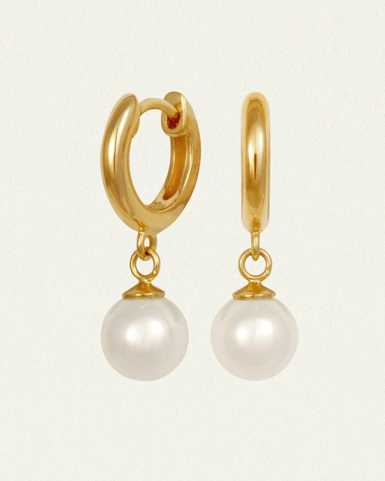 The Alba Earrings in 18K Gold Vermeil are a simple gold hoop with a single Freshwater White Pearl drop. Meaning 'white' in Latin, the Alba earrings bring the wearer wisdom from experience and a sense of purity.