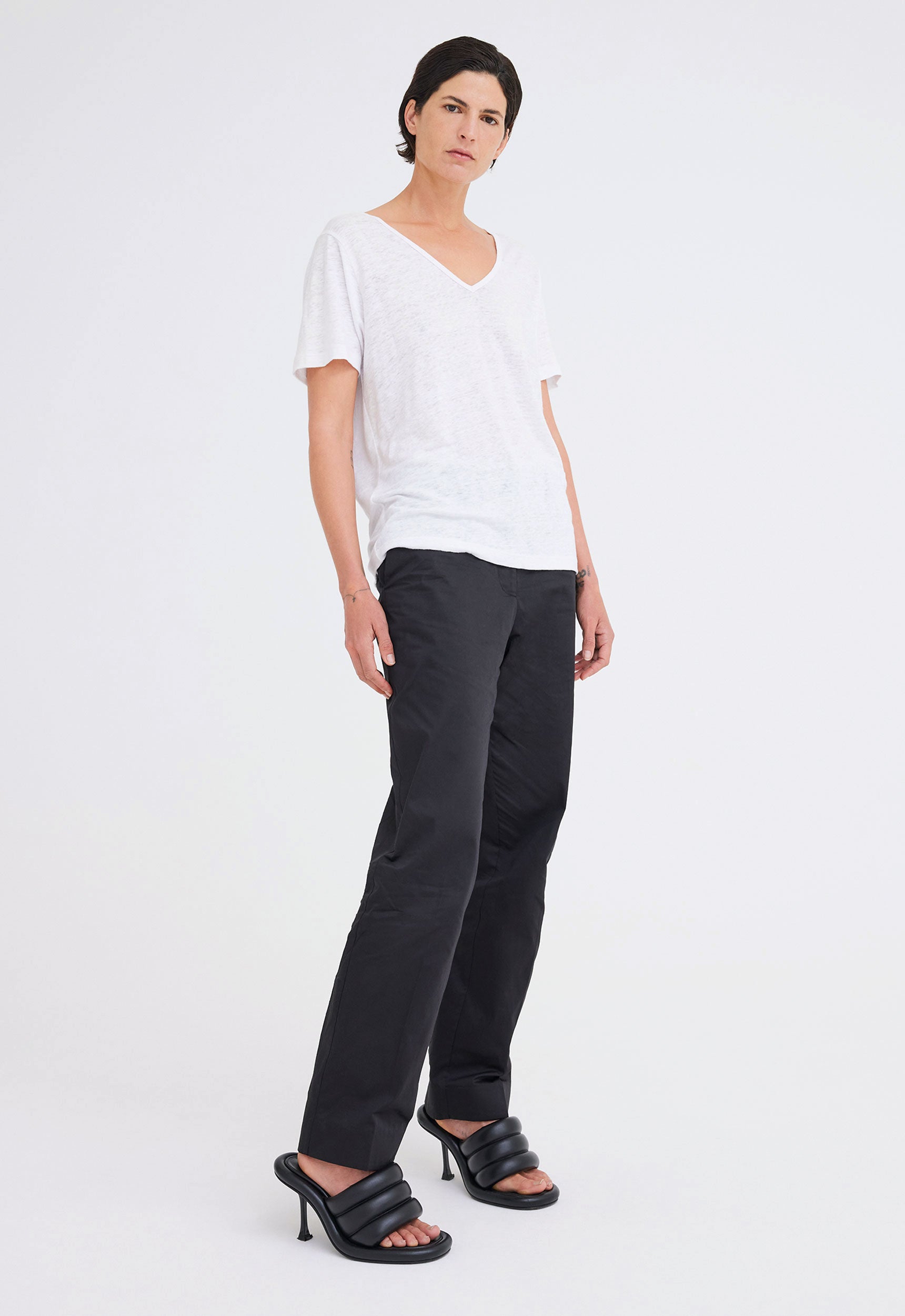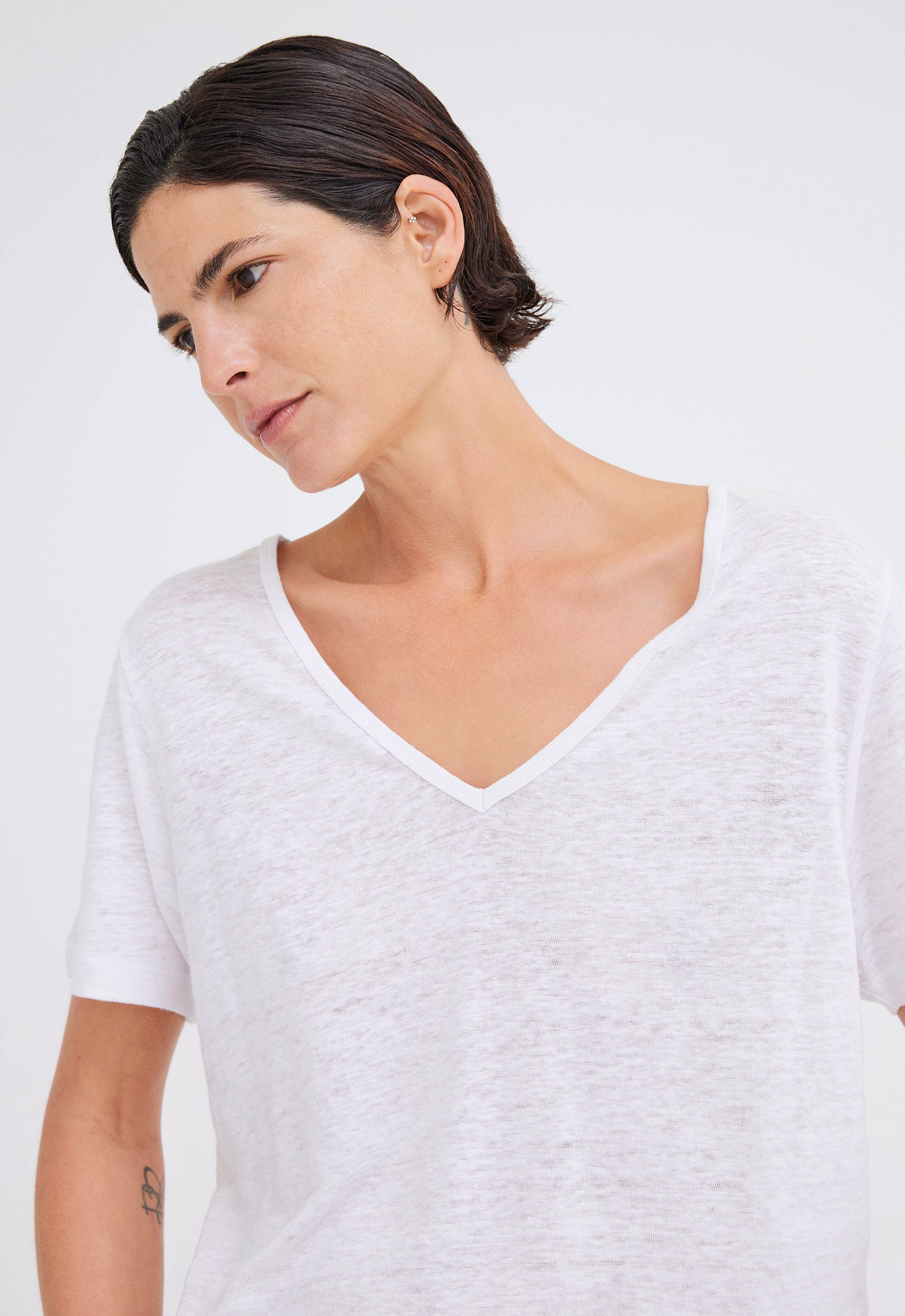 Andy Linen V-neck Tee - White