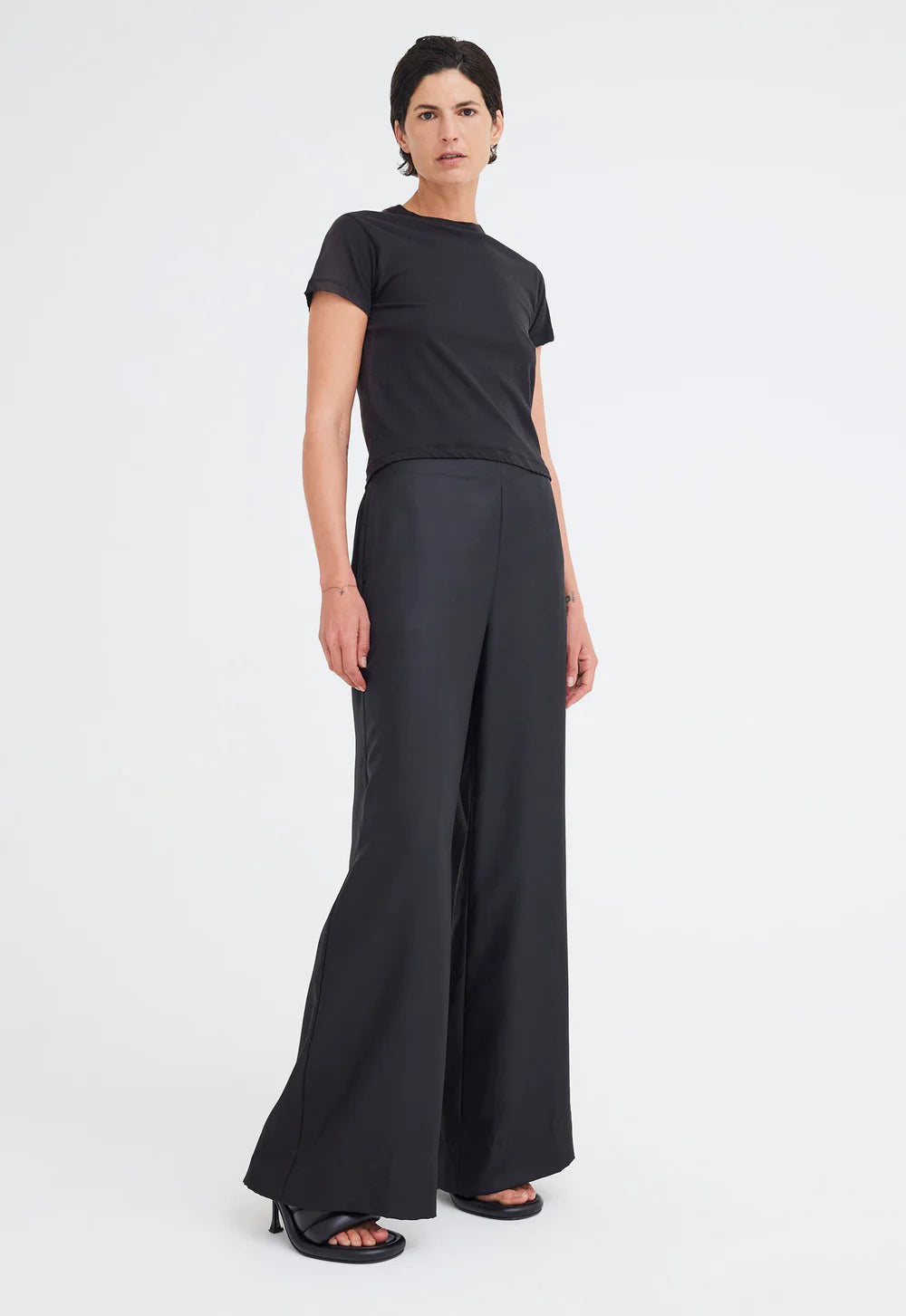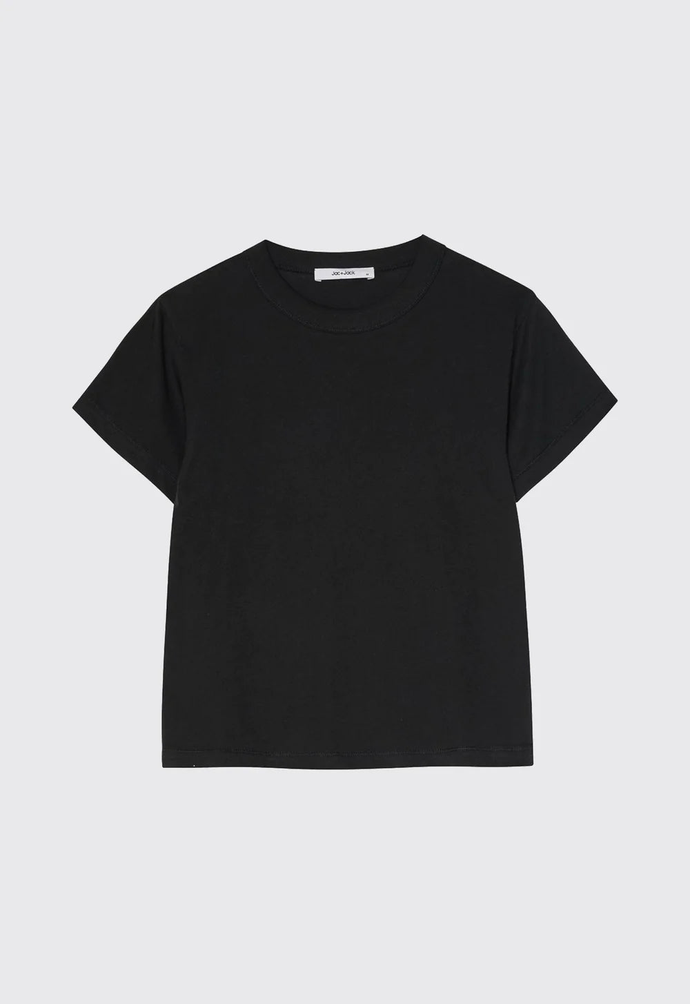 This cotton tee is the basic every wardrobe needs. Cut from a supremely soft organic cotton jersey in a petite cropped fit - this piece falls just past the waistline with a crew neck and capped sleeves. Contrast the silhouette with relaxed tailoring for an easy off duty look. This piece is designed for a neat fit. For a more relaxed look take the next size up.
