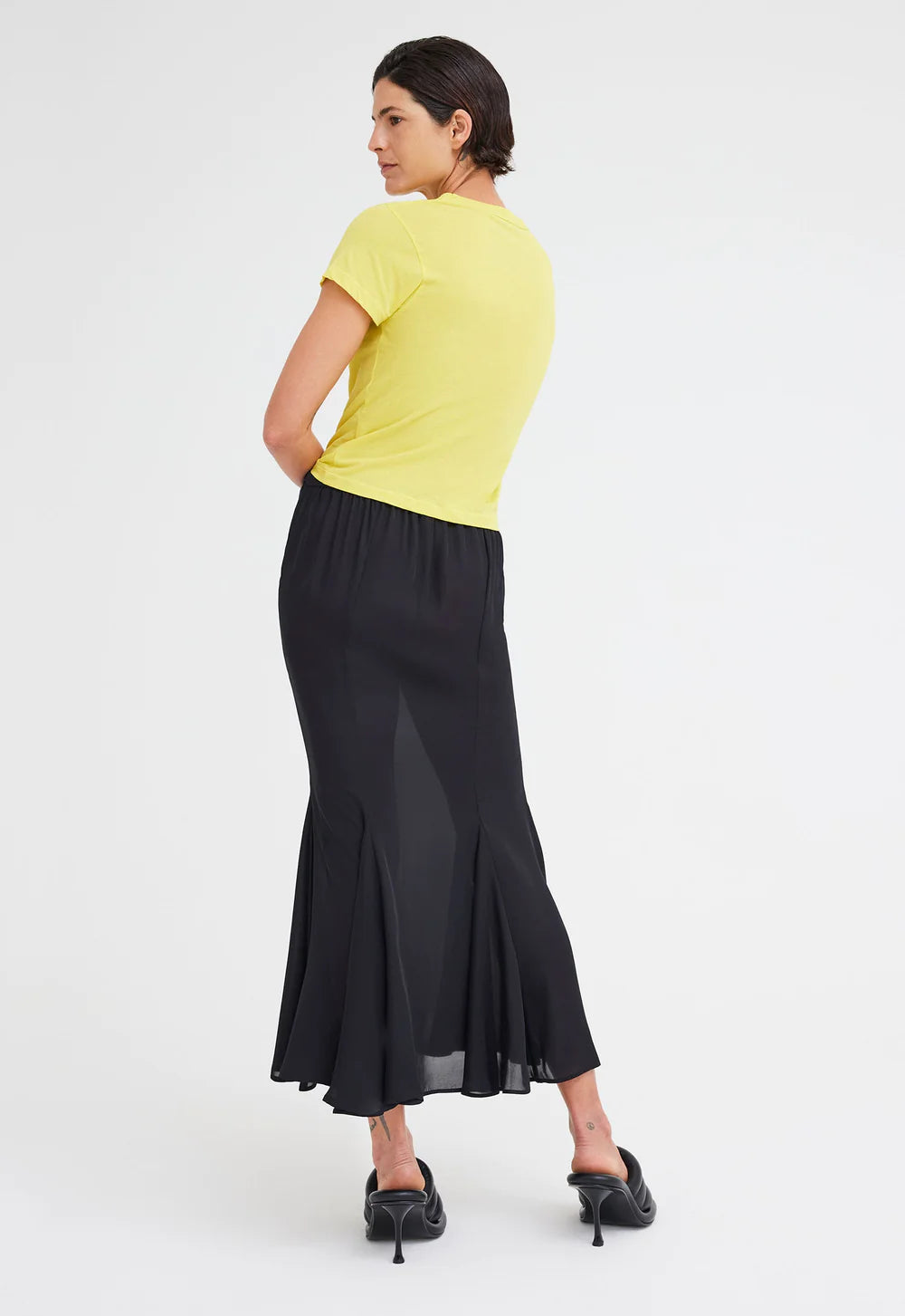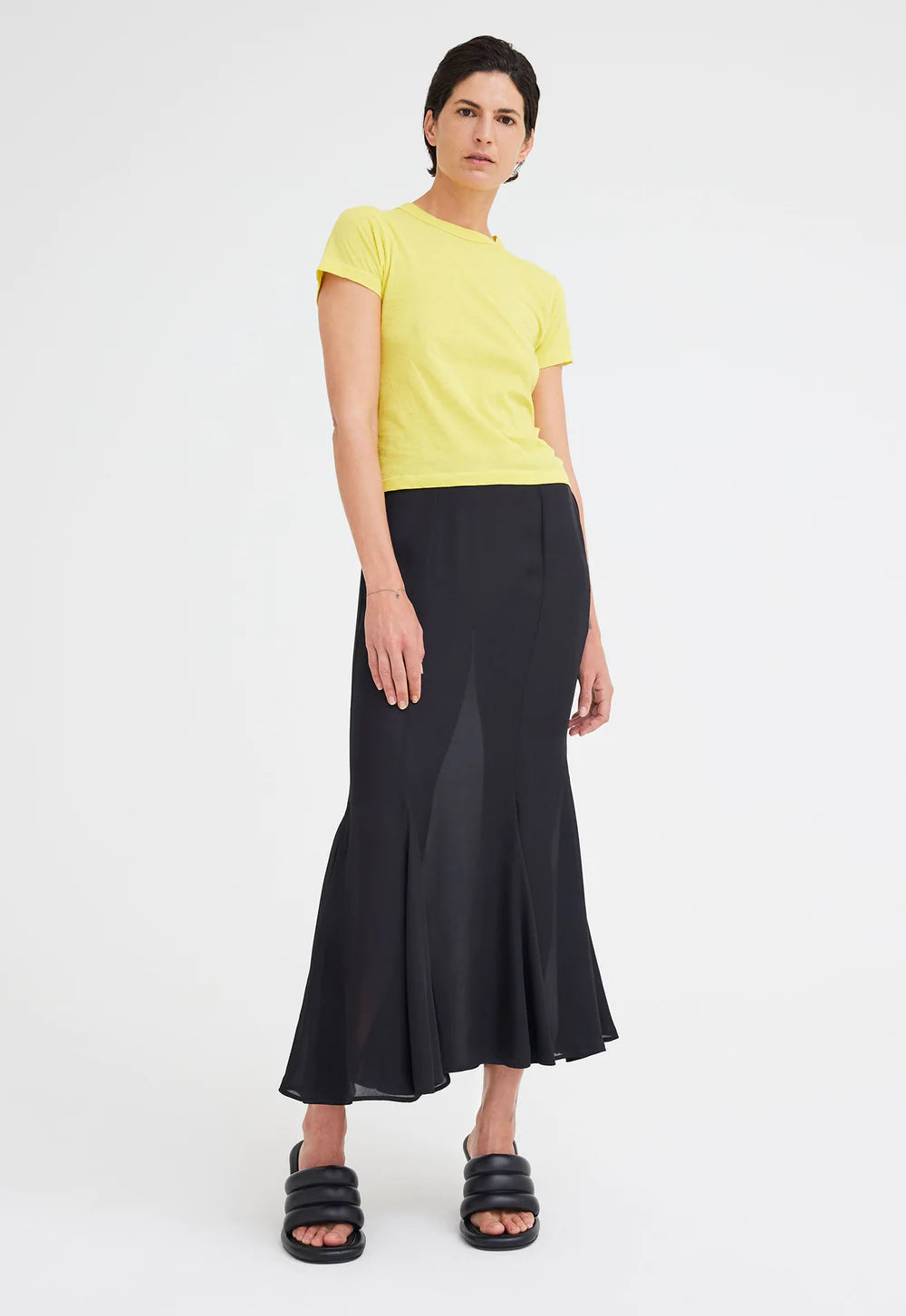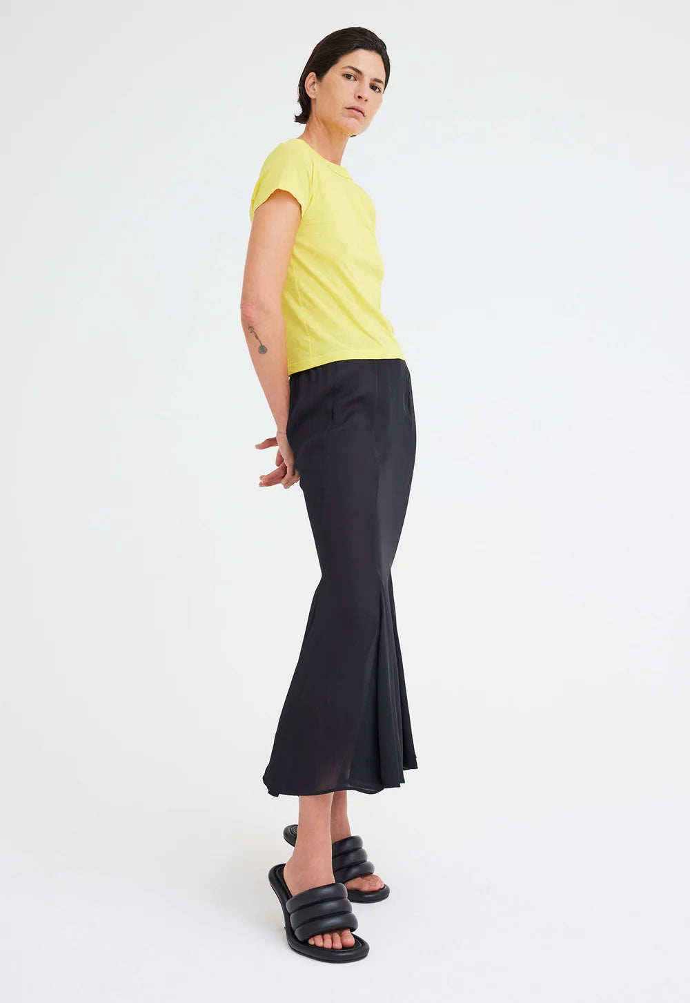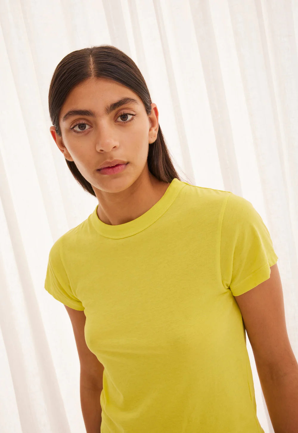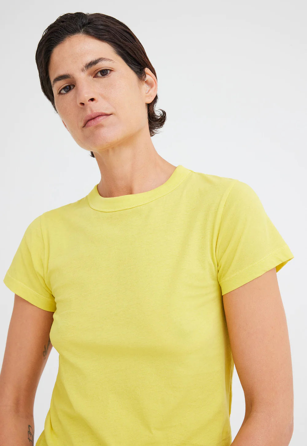 This cotton tee is the basic every wardrobe needs. Cut from a supremely soft organic cotton jersey in a petite cropped fit - this piece falls just past the waistline with a crew neck and capped sleeves. Contrast the silhouette with relaxed tailoring for an easy off duty look. This piece is designed for a neat fit. For a more relaxed look take the next size up.