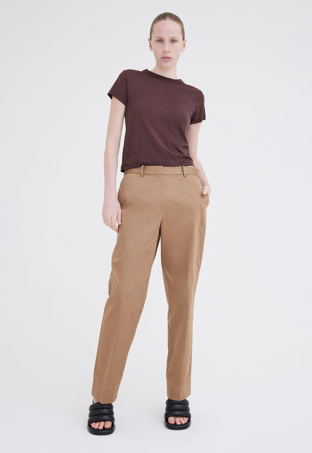 This cotton tee is the basic every wardrobe needs. Cut from a supremely soft organic cotton jersey in a petite cropped fit - this piece falls just past the waistline with a crew neck and capped sleeves. Contrast the silhouette with relaxed tailoring for an easy off duty look. This piece is designed for a neat fit. For a more relaxed look take the next size up.