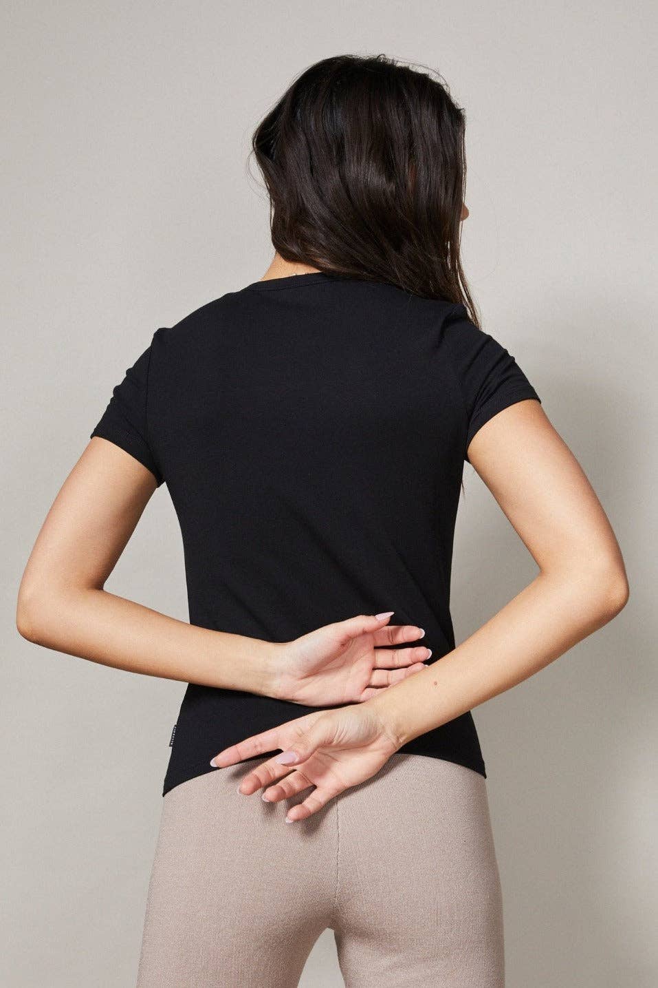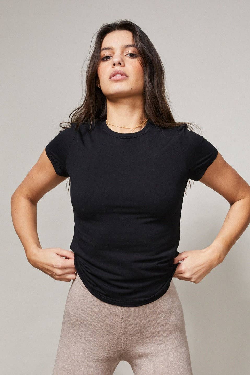 The perfect everyday tee this breathable, everyday classic is made with cool, comfortable bamboo cotton: with a crew neck fit and buttery soft feel, this tee is perfect to wear alone or layered under other pieces.