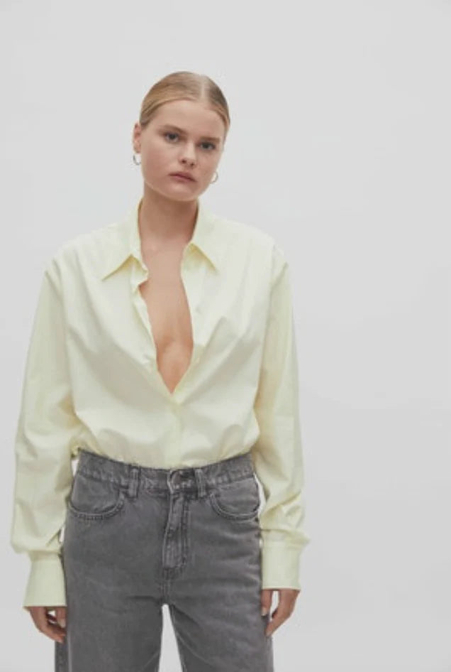 - Traditional collar and front placket detail