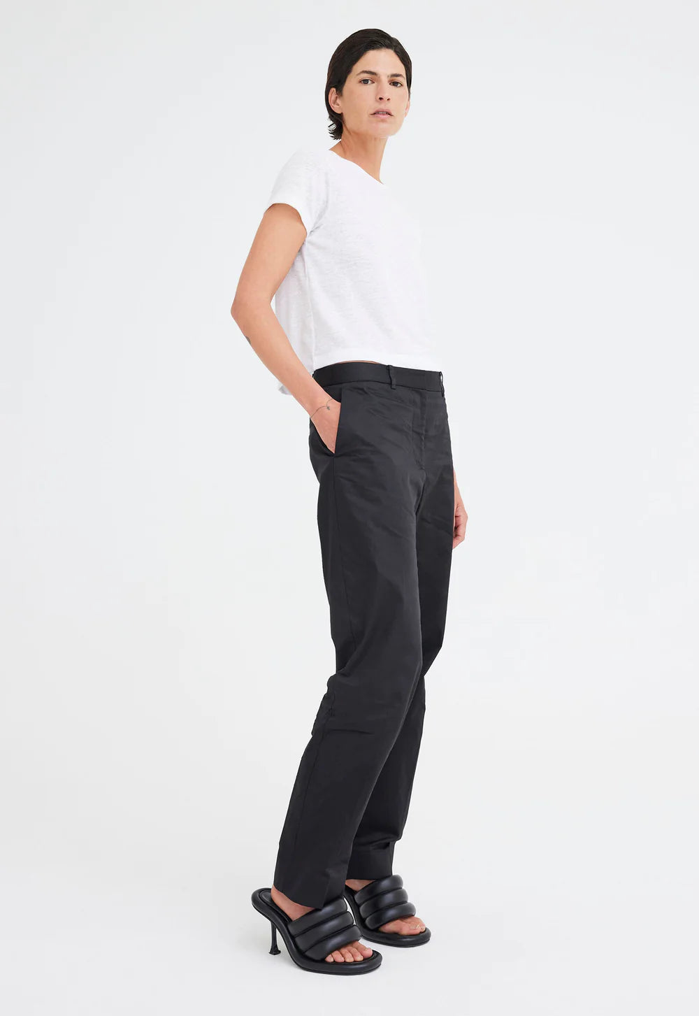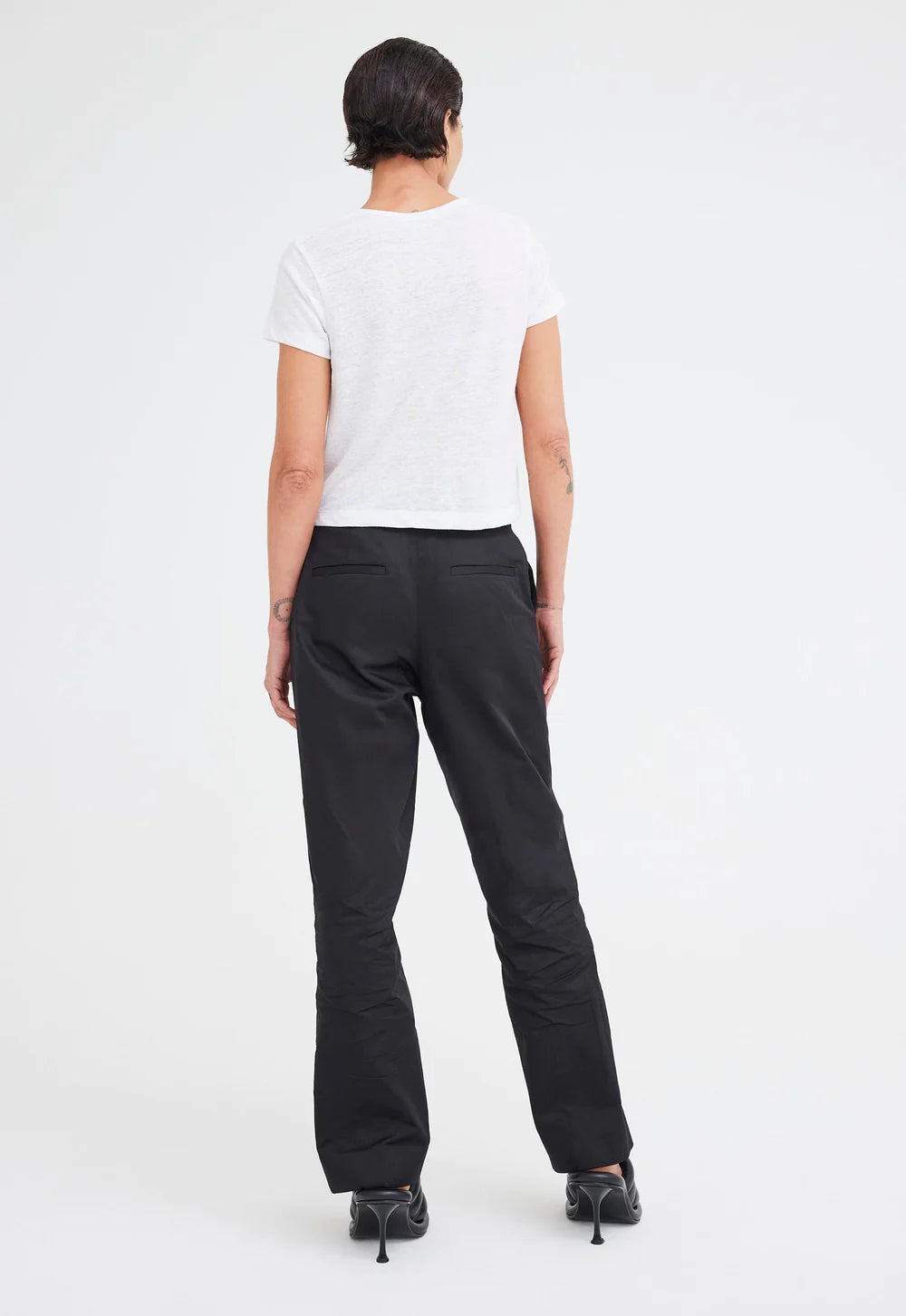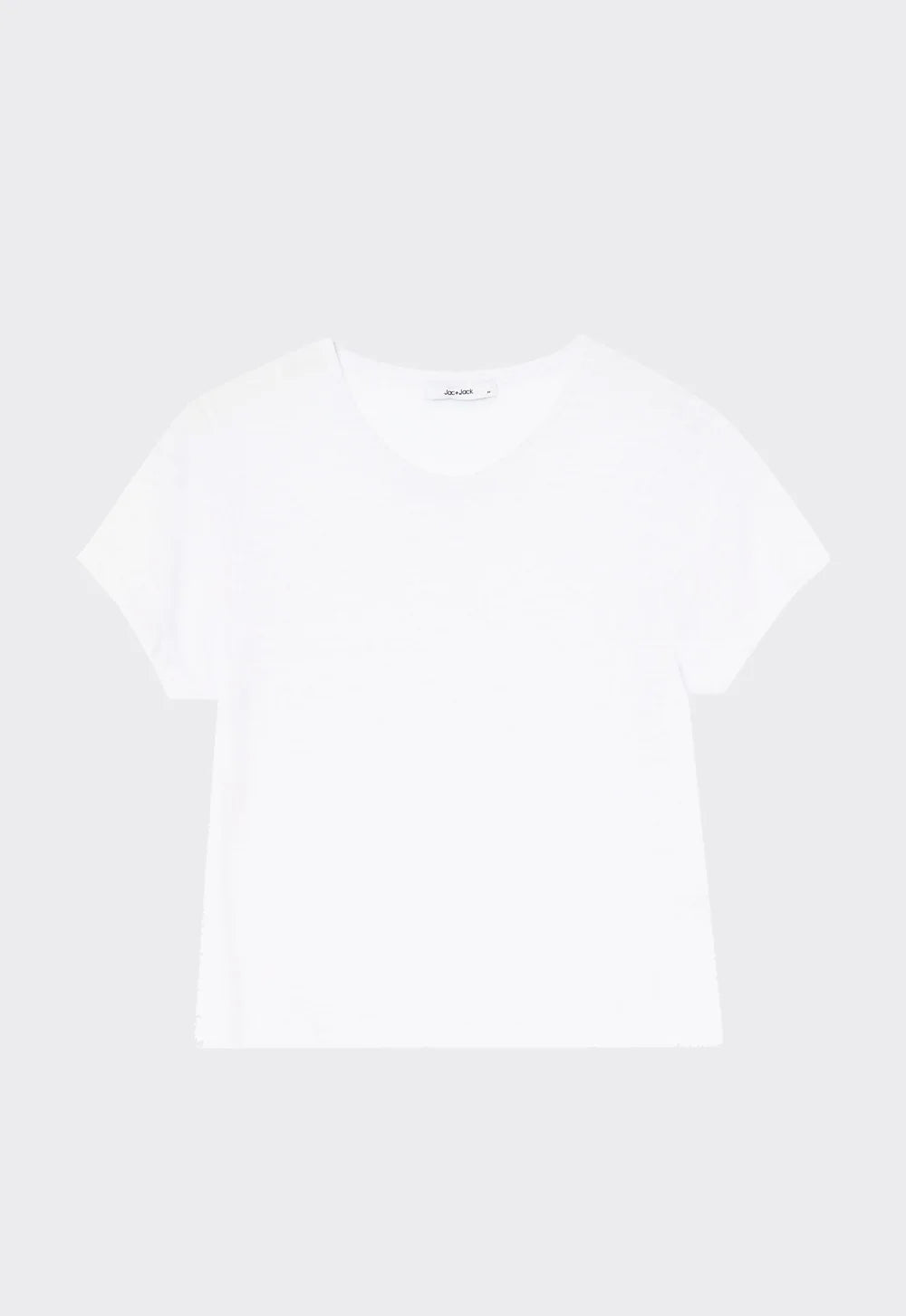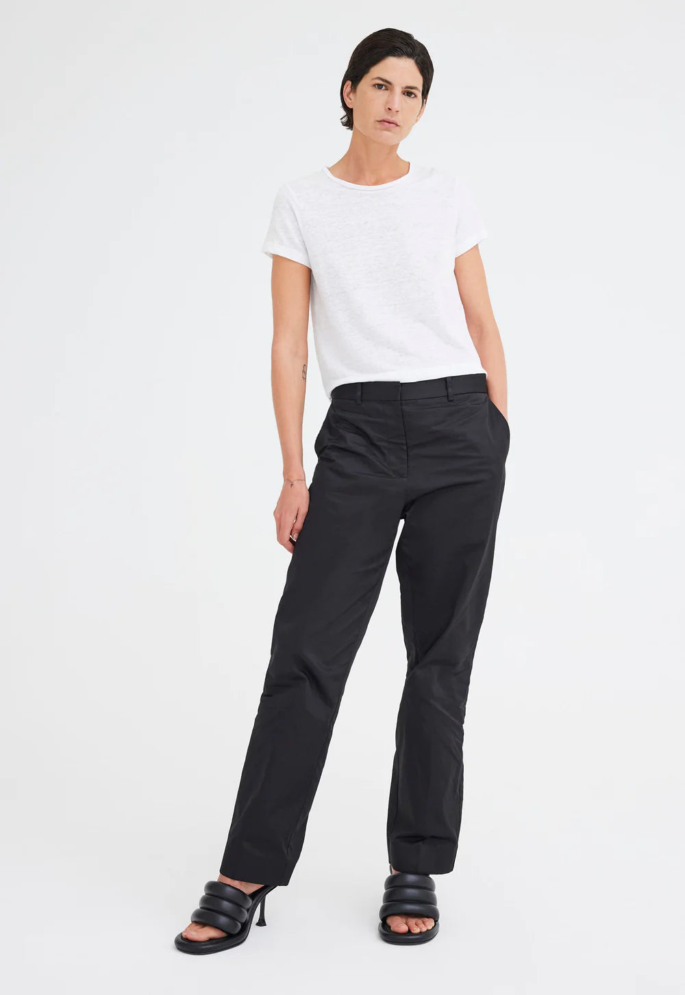 This linen tee is the essential every wardrobe needs. Cut from a soft yet weighty linen jersey in a petite cropped fit - this piece falls just past the waistline with a crew neck and capped sleeves. Contrast the silhouette with relaxed tailoring for an easy off duty look. This piece is designed for a neat fit. For a more relaxed look take the next size up.