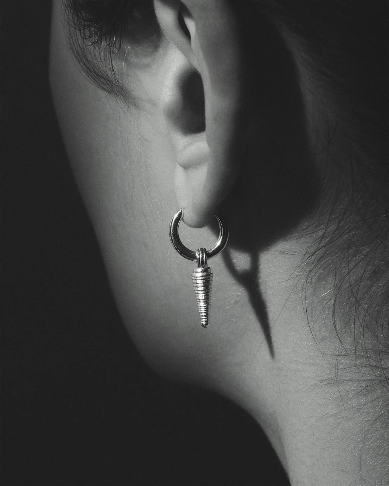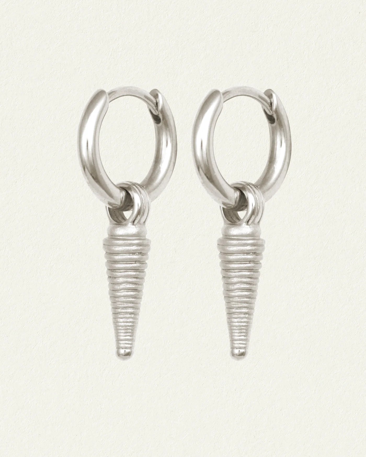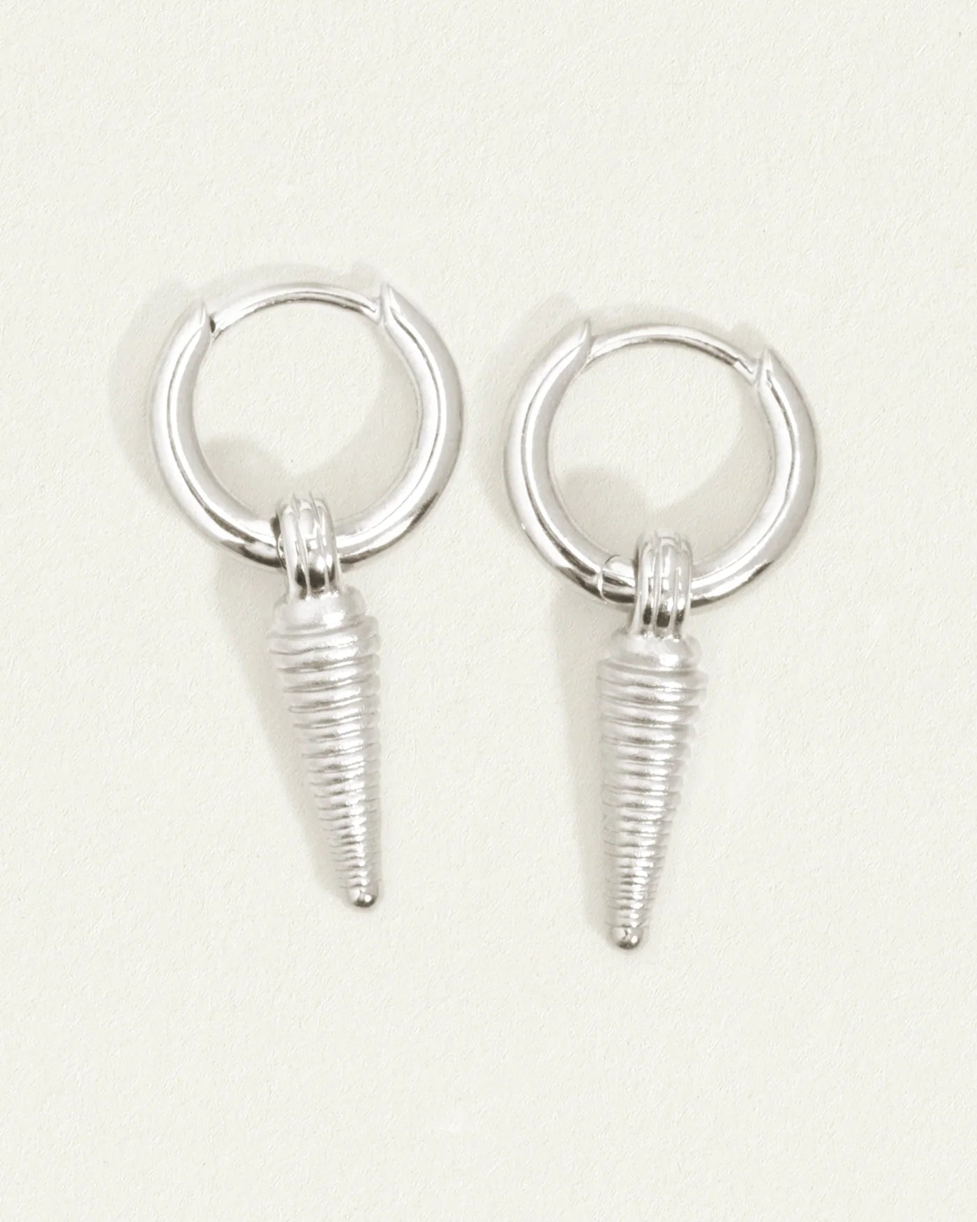 These recycled sterling silver huggies feature captivating cone-shaped drops embodying the resonance of an echo.