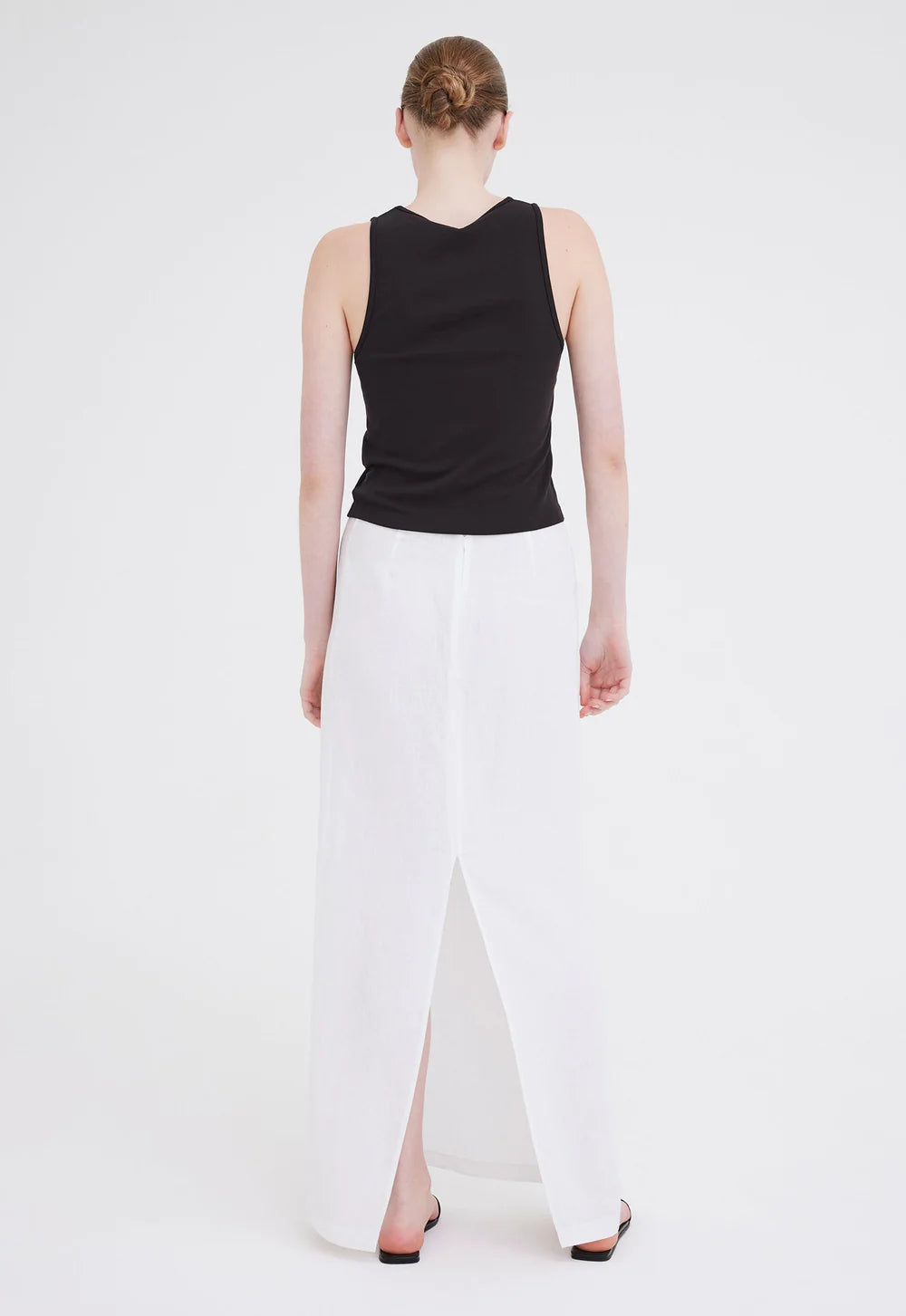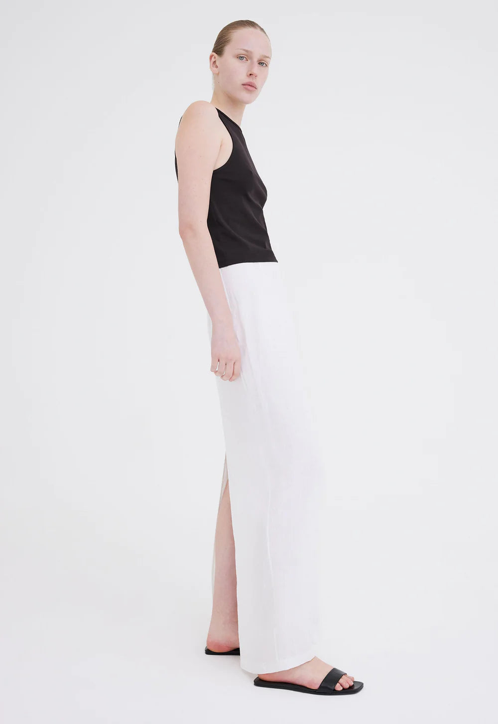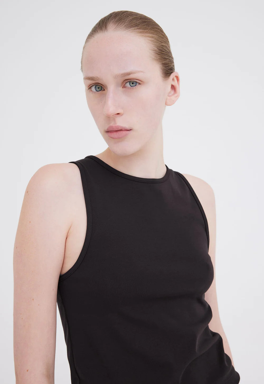 A true wardrobe staple. This tank top is cut from an organic ribbed stretch jersey for a close cropped fit - sitting just past the waistline. With a delicate edge bind on neck and cut away armholes this style has been kept free of extraneous details to ensure its longevity. Wear casually with relaxed slouchy pieces or dress it up with more tailored bottoms.
