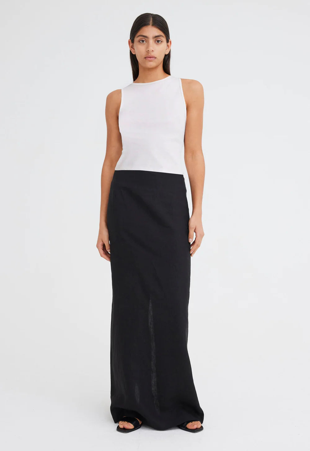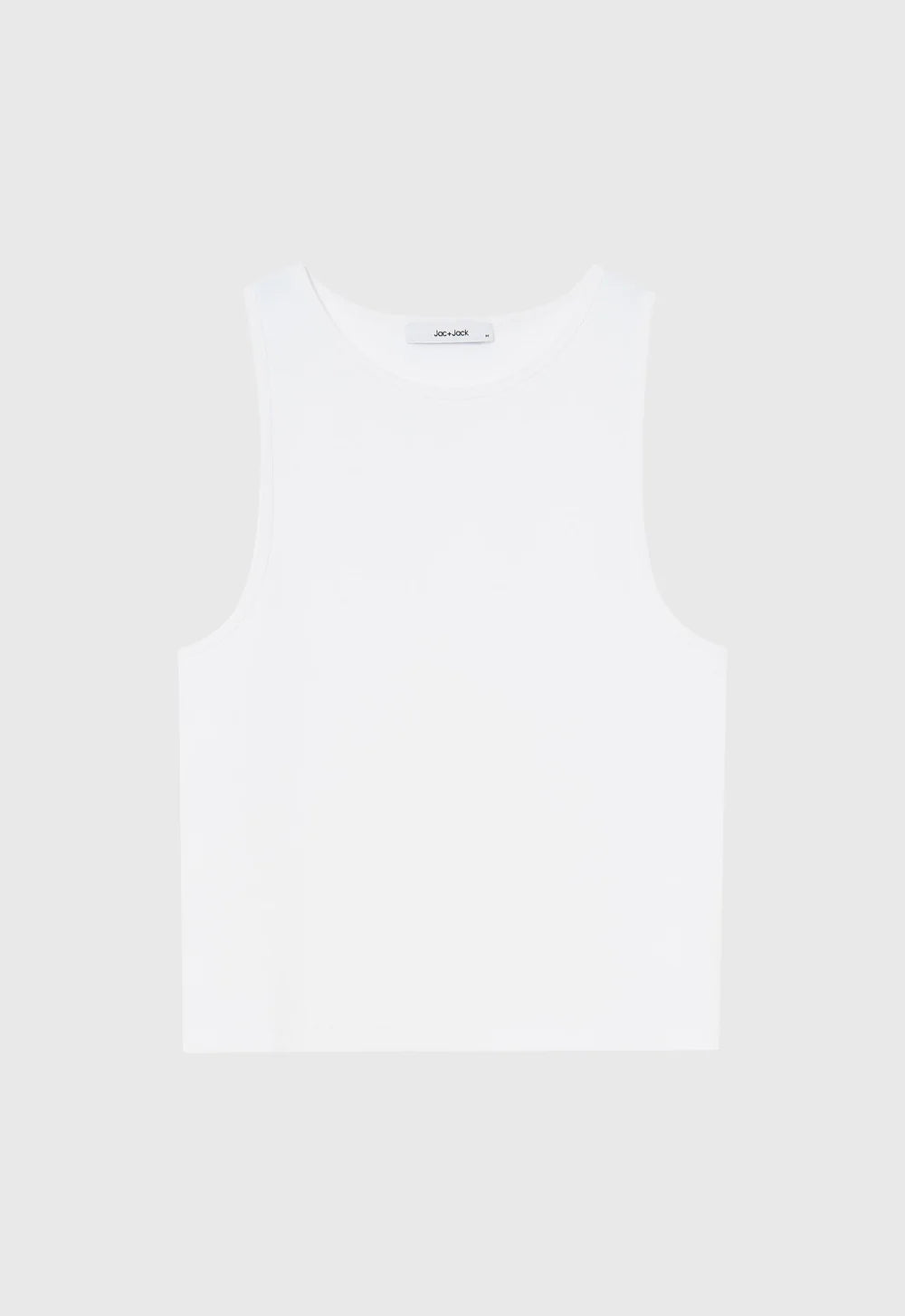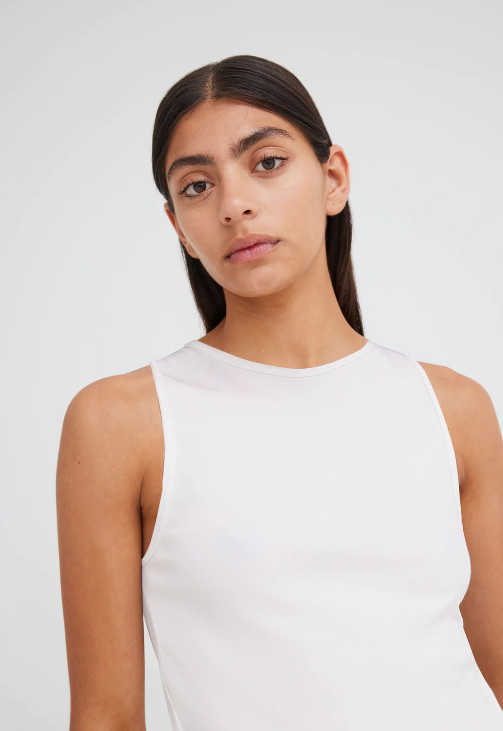 A true wardrobe staple. This tank top is cut from an organic ribbed stretch jersey for a close cropped fit - sitting just past the waistline. With a delicate edge bind on neck and cut away armholes this style has been kept free of extraneous details to ensure its longevity. Wear casually with relaxed slouchy pieces or dress it up with more tailored bottoms.
