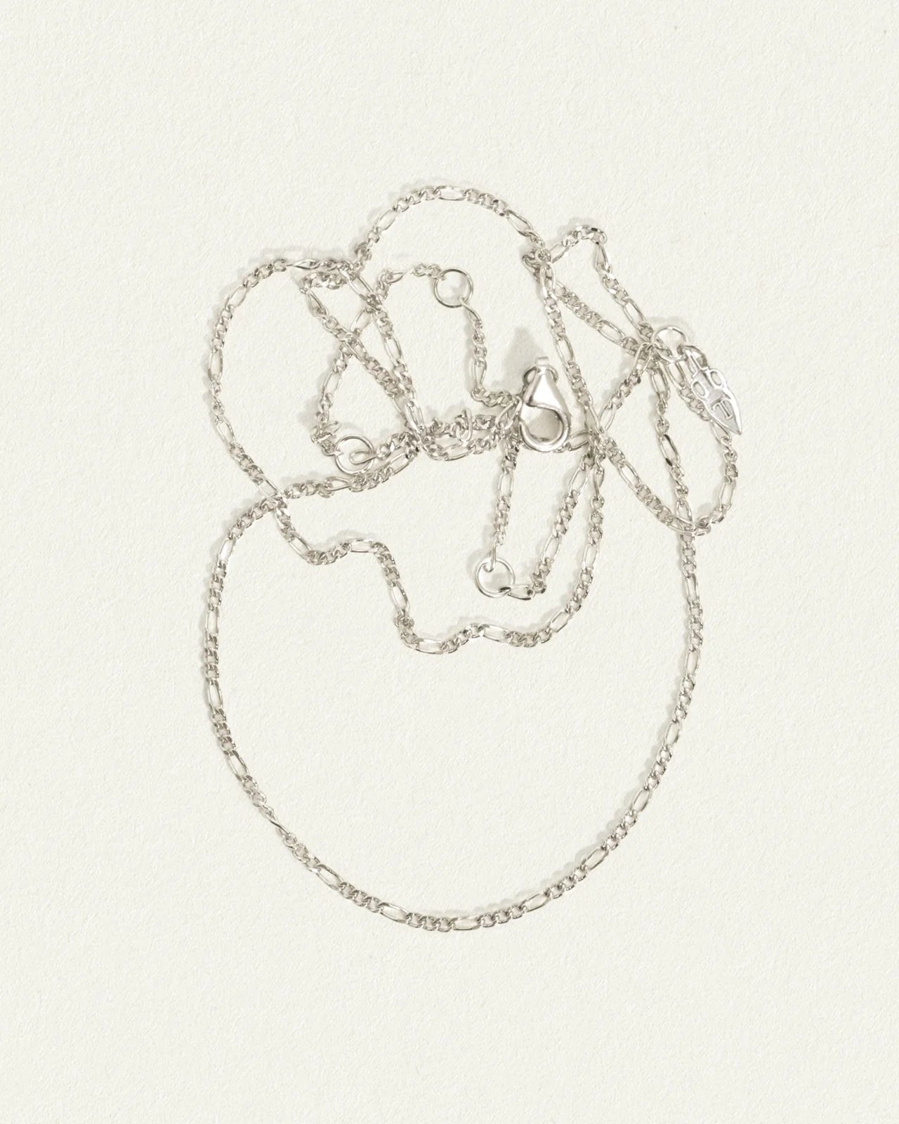 The Gala Necklace is a fine figaro chain crafted from ethically sourced sterling silver. Like the tranquil waters of a calm sea, this delicate chain necklace embodies peace and serenity.