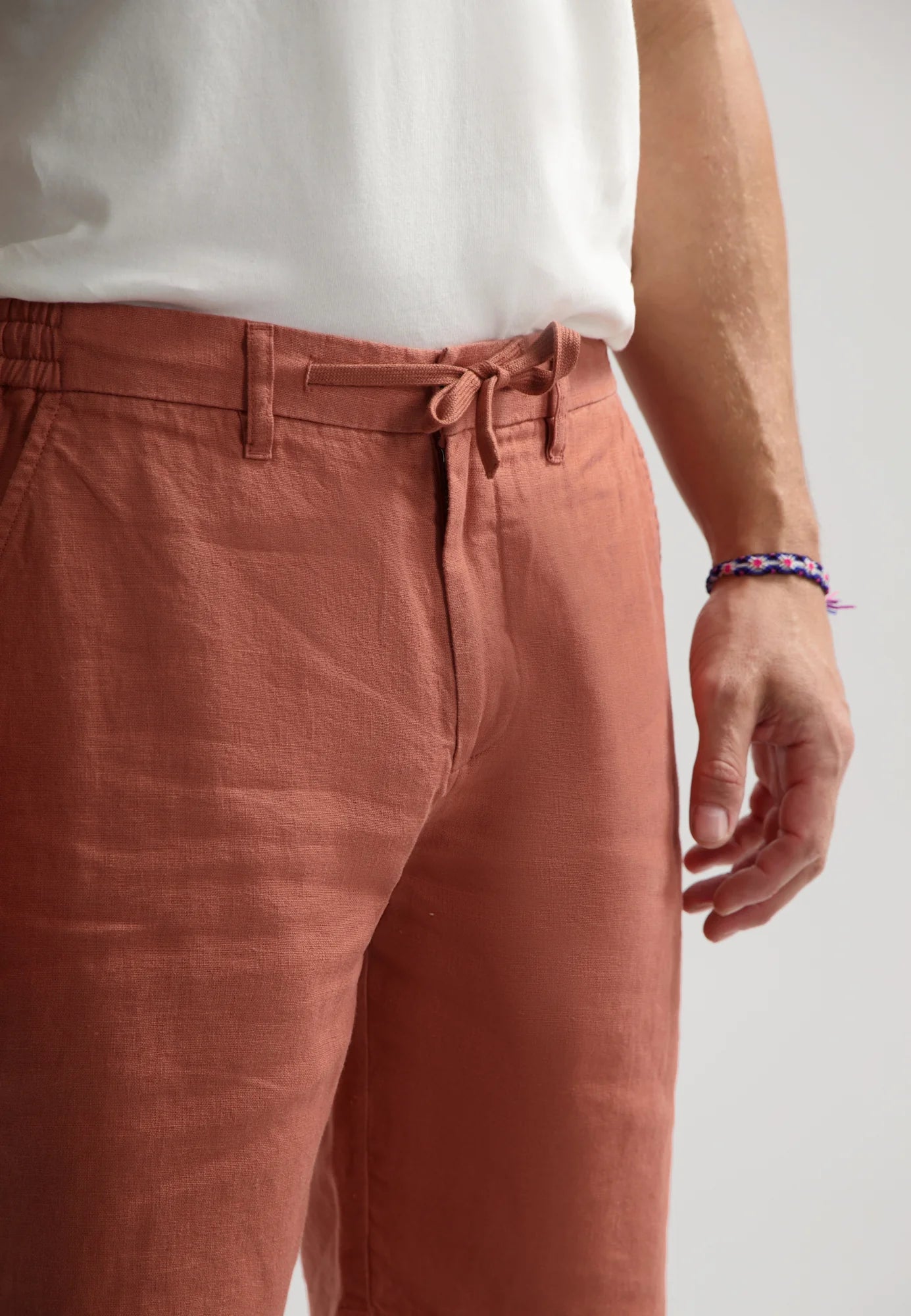Wardrobe summer essential: 100% crispy linen shorts. Relaxed fit and style with partly elastic waistband and cord. Perfect with a tee or our matching Troy Blazer for a summer party.