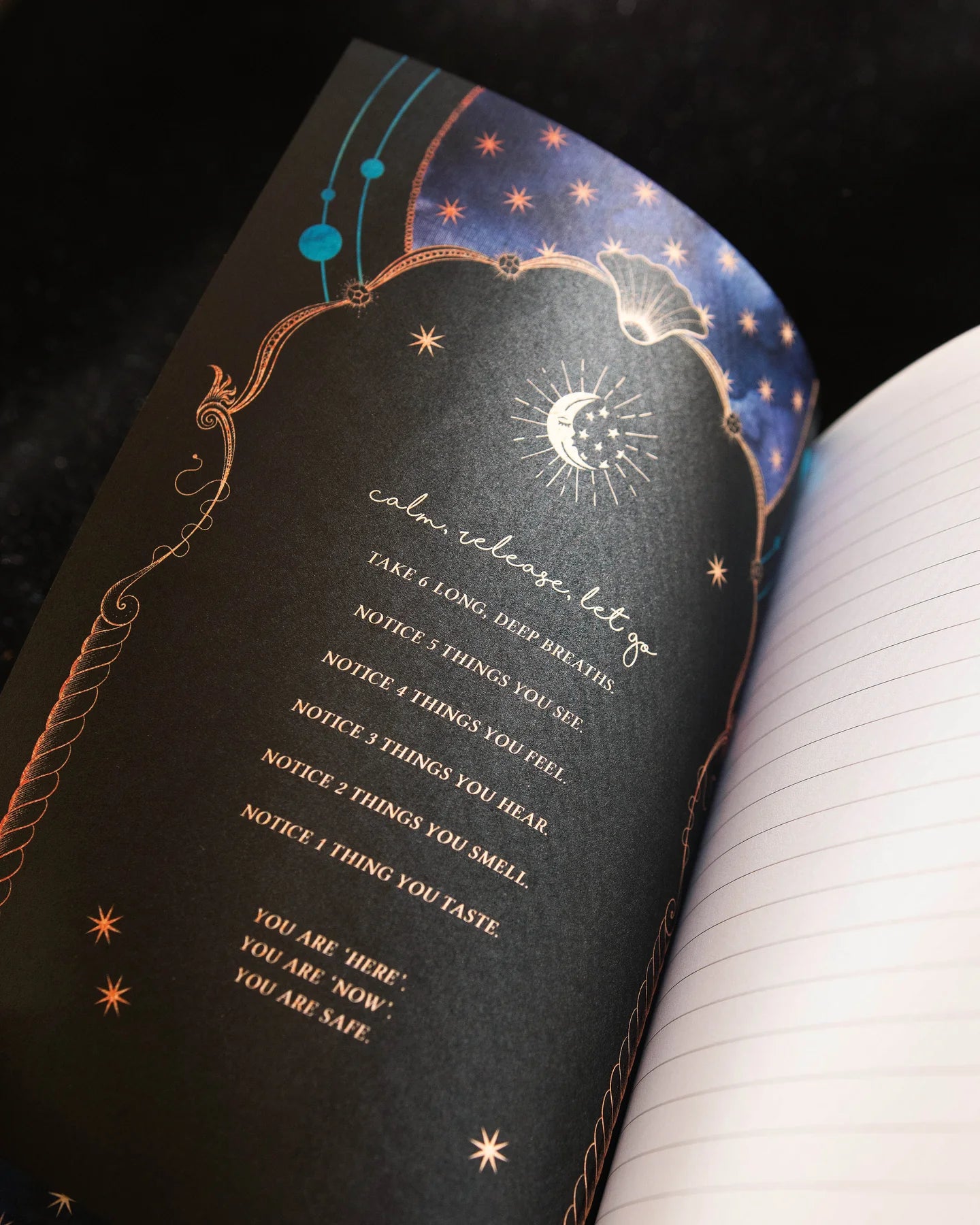 With affirmations on the first page, a mindfulness exercise on the other side, and gold foiled page edges.