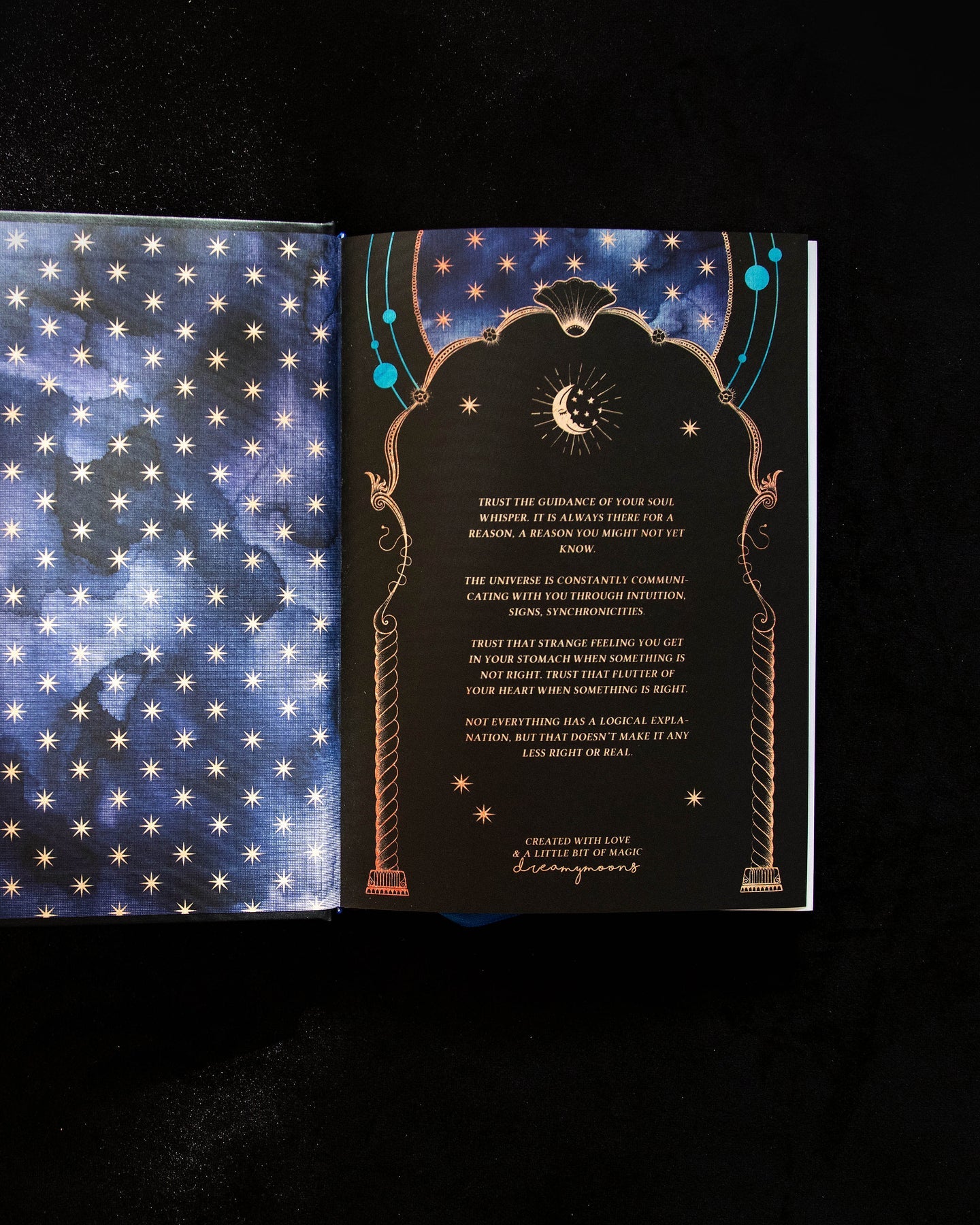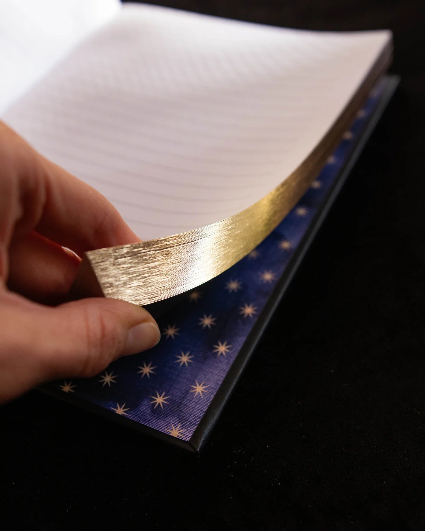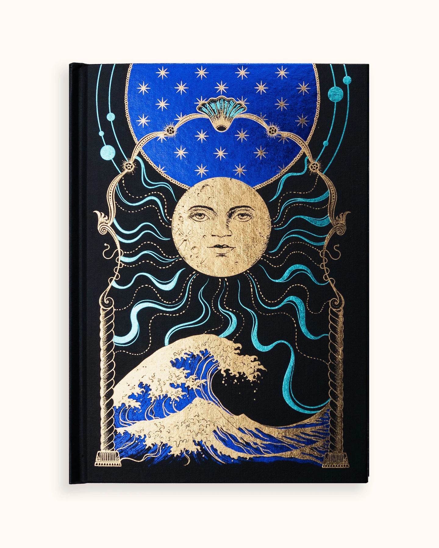 A5 hardcover journal with magical gold, blue and cyan foil detailing.
