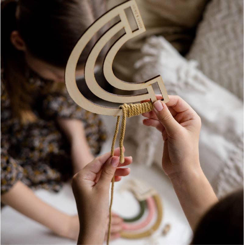 Simply wrap macrame rope around your arcs with the threader, to create your beautiful rainbow. Choose your colours, then hang up and admire your masterpiece. A beautiful mindful activity and most popular Christmas gift!