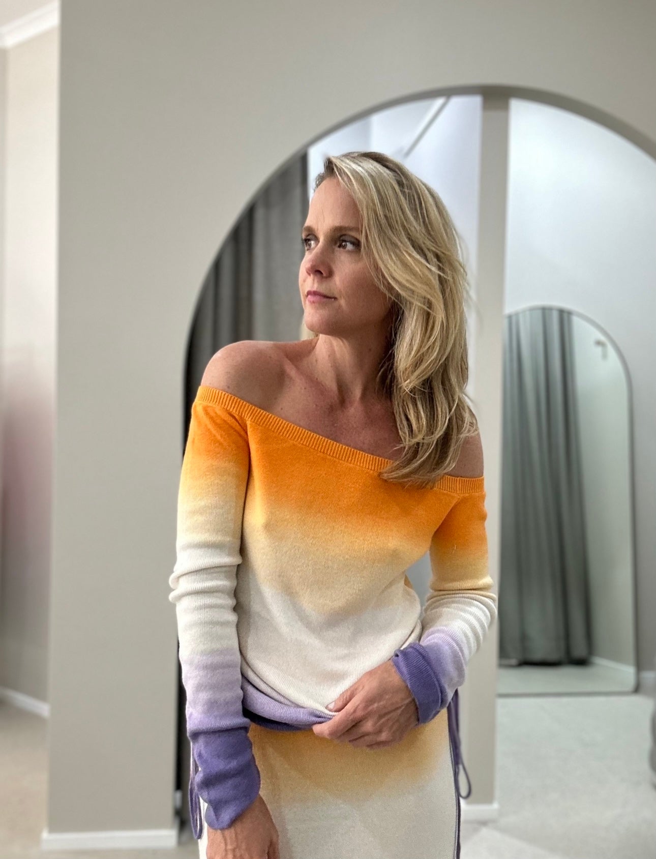 Maxine Off Shoulder Long Sleeve Top - Ombre Sunrise