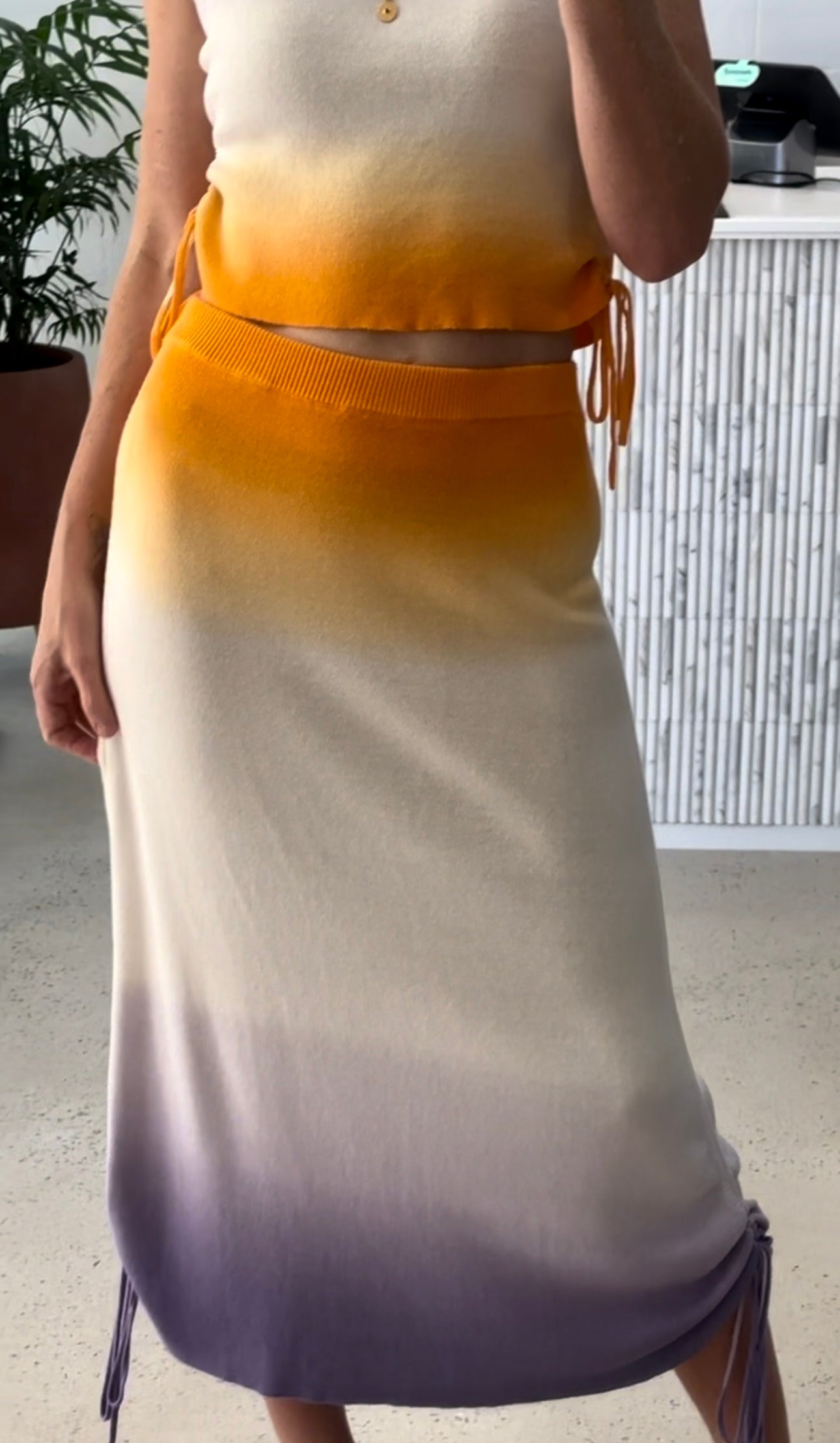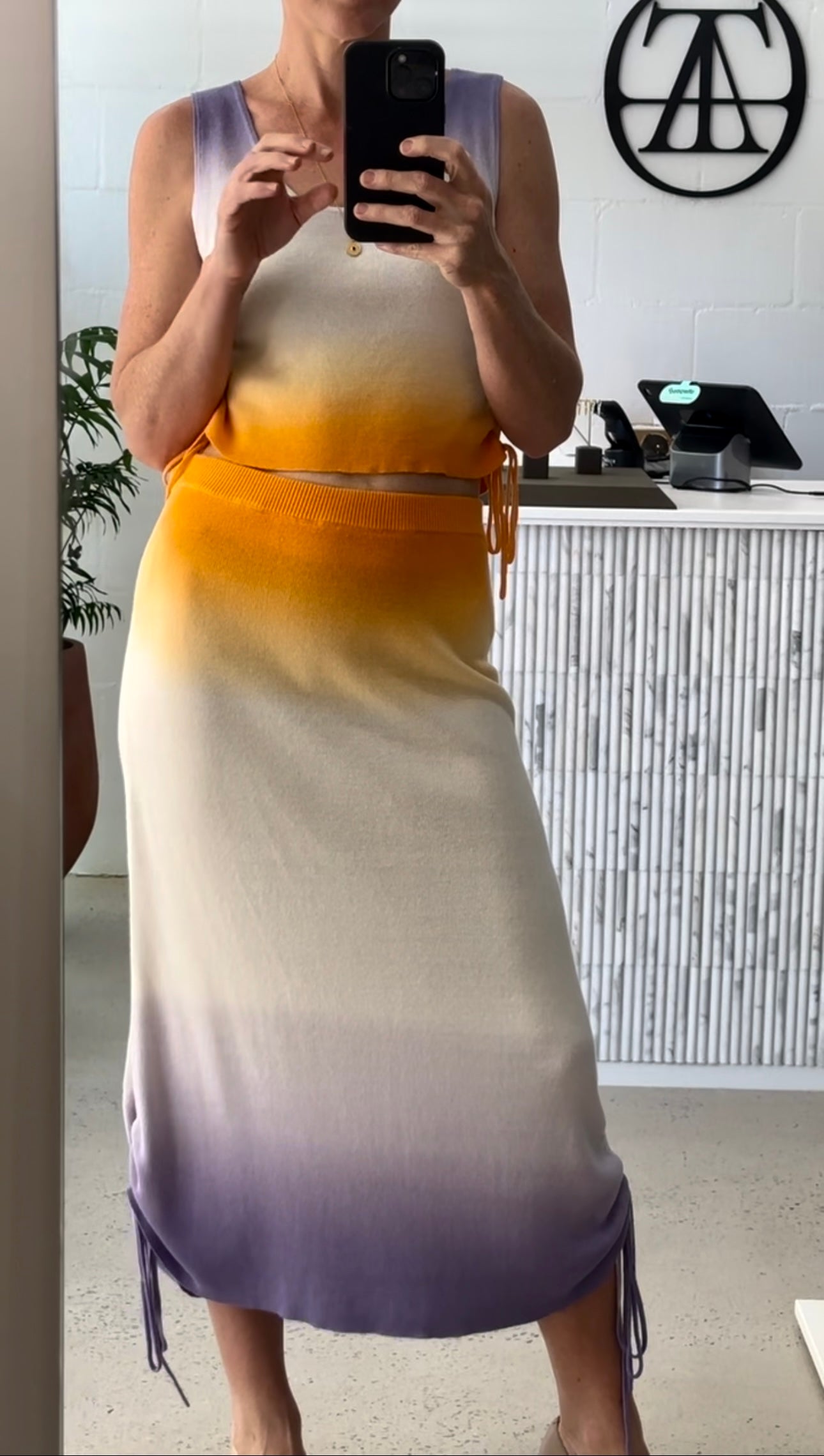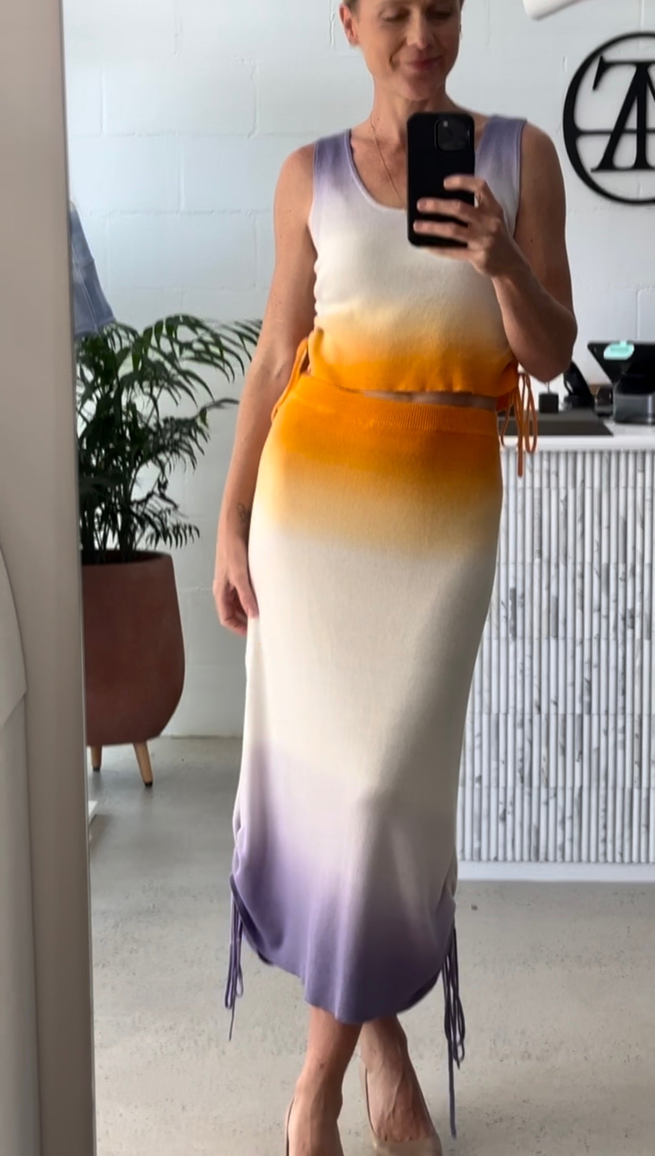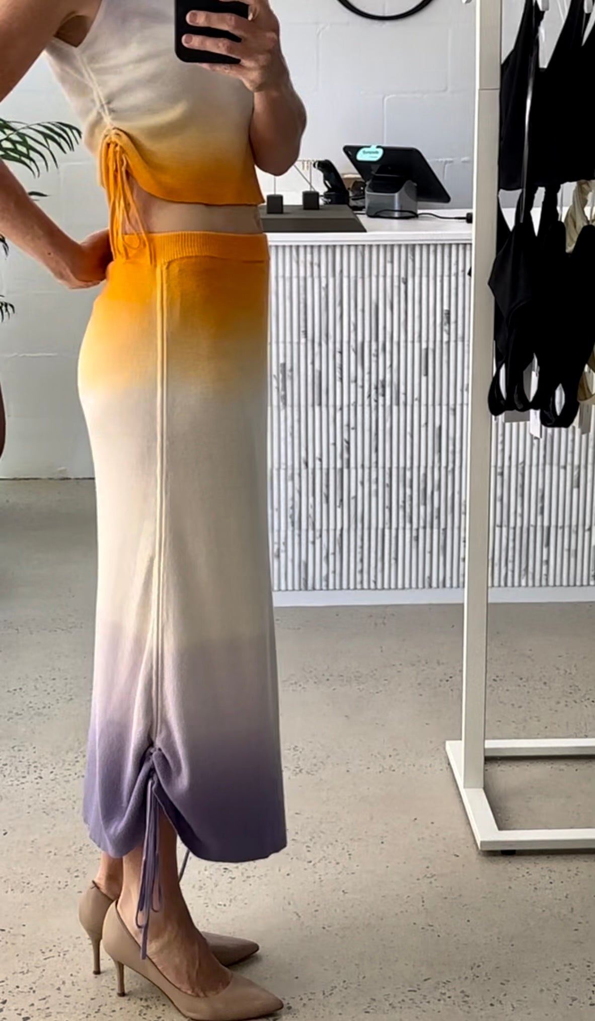 Meet the Maxine Skirt - a luxurious lightweight knit skirt with ties on both sides that can ruched up to create the shape and length you need. A versatile piece that can be worn high or low waisted.