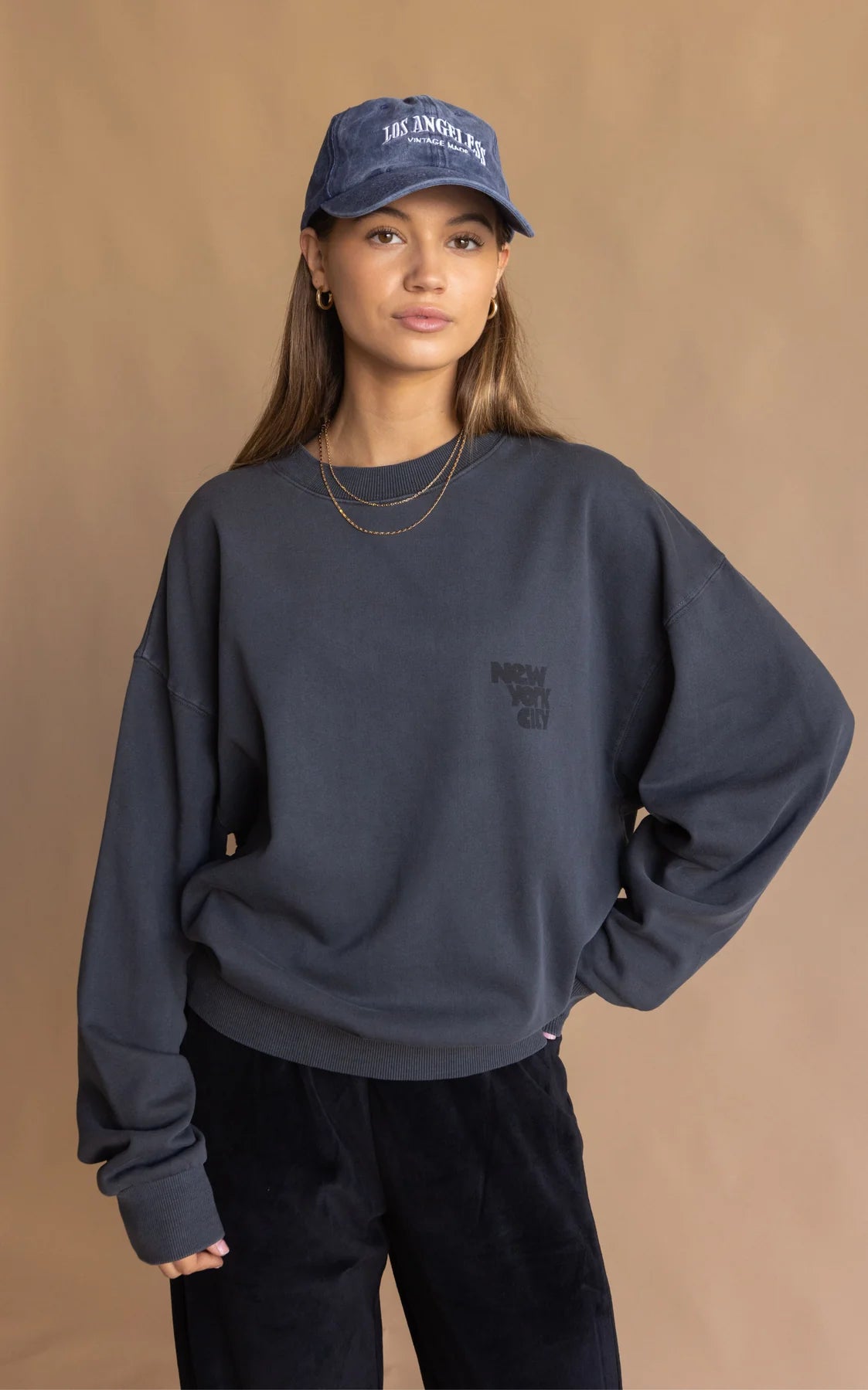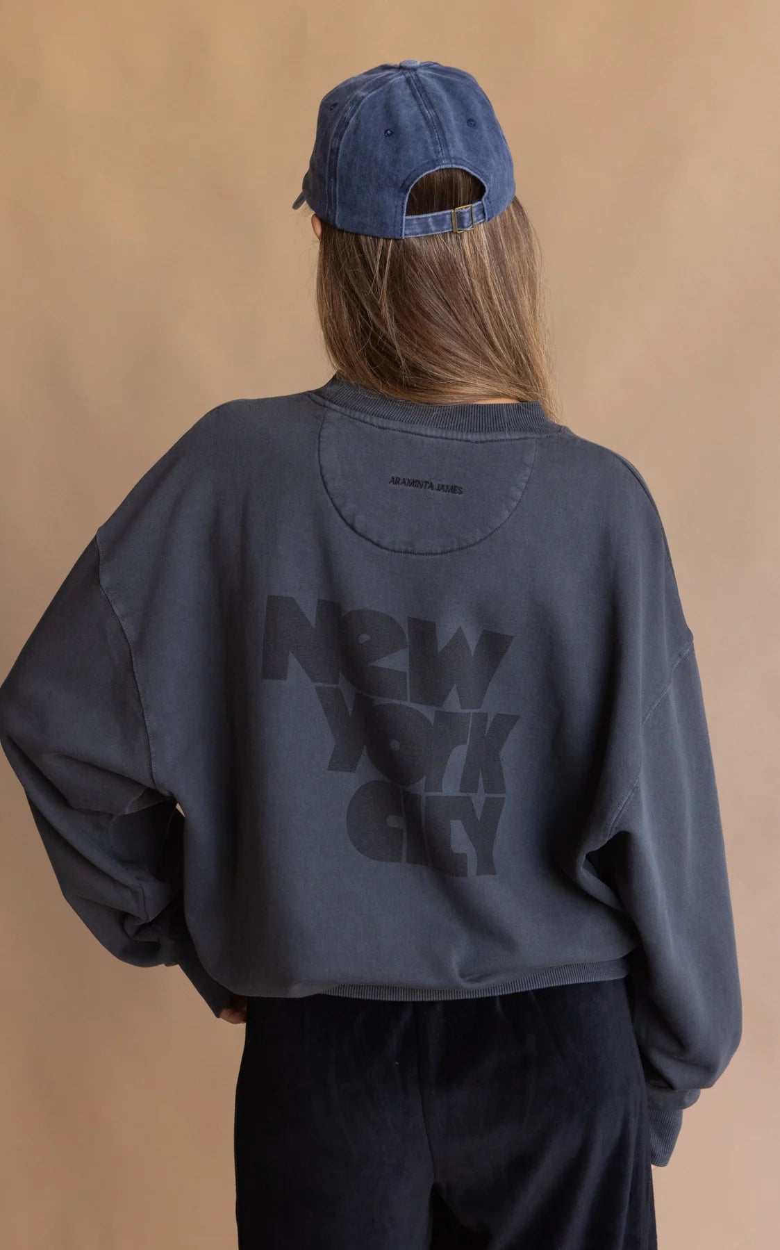 The NYC Sweatshirt in a classic Washed Black colour. A laid-back essential with a relaxed-fit, inspired by the ultimate cool-girl style of New York City. This sweatshirt features an exclusive NYC print at the back and front chest and is cut from a soft cotton brushed fleece.