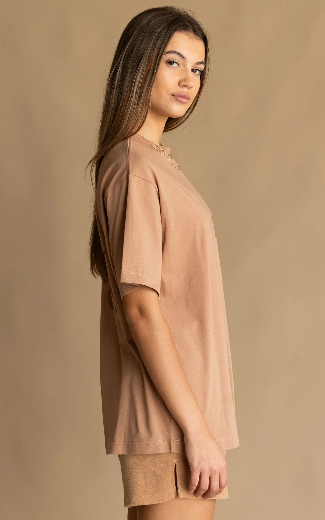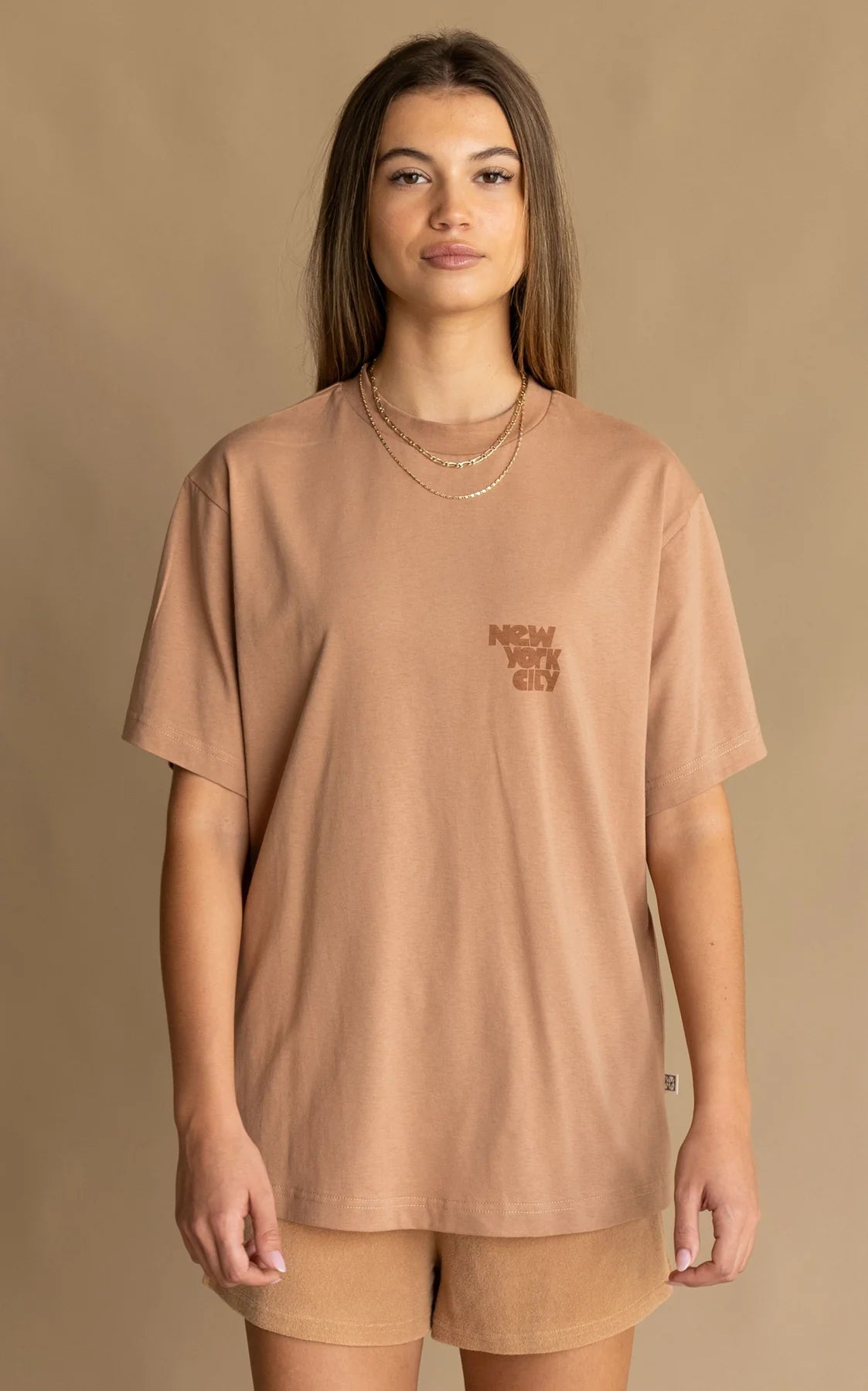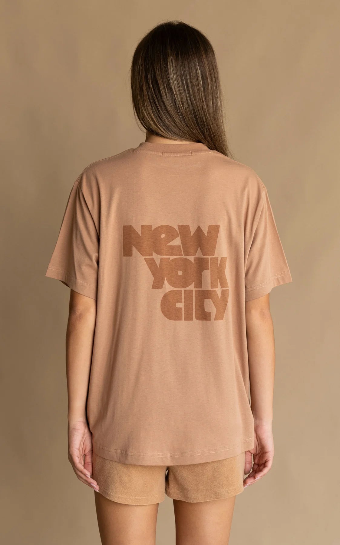 The NYC Tee in a beautifully neutral Coffee colour. Featuring a round crew neckline and exclusively designed AJ graphic at the front and back. Designed in a signature classic shape, this tee is perfect for a relaxed yet chic look.