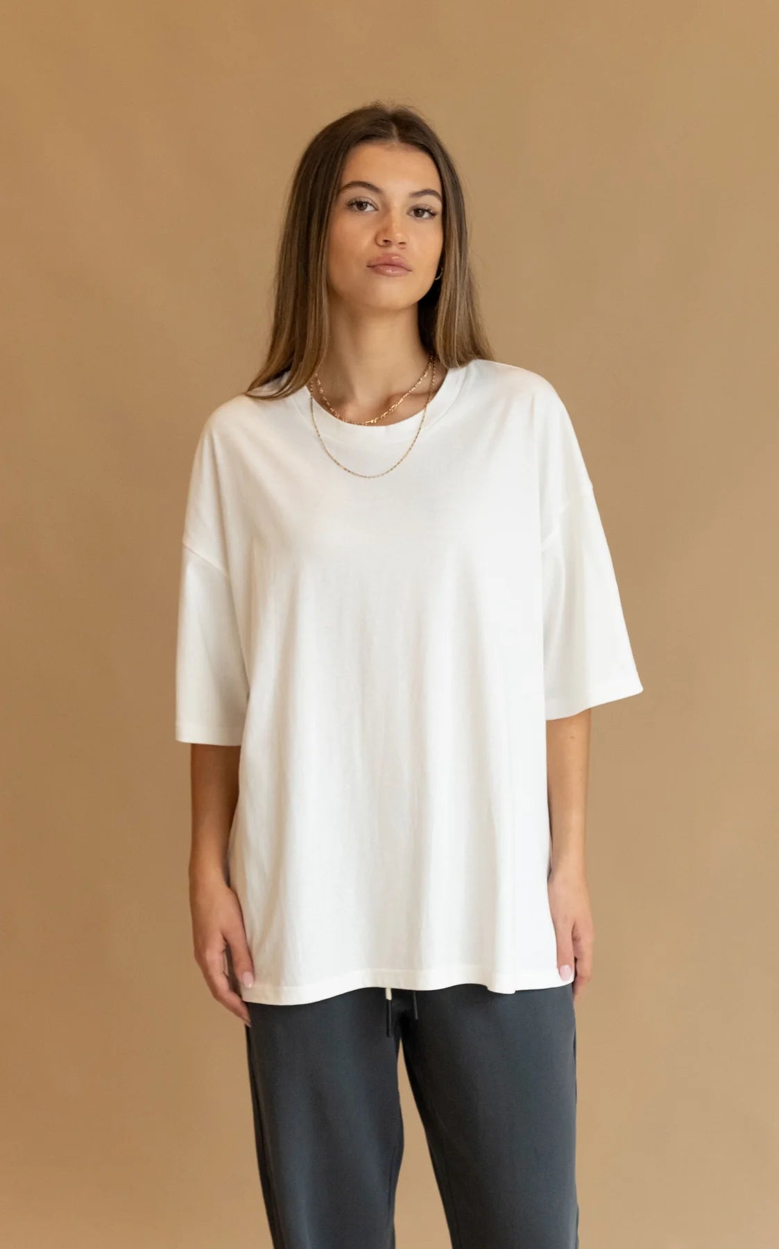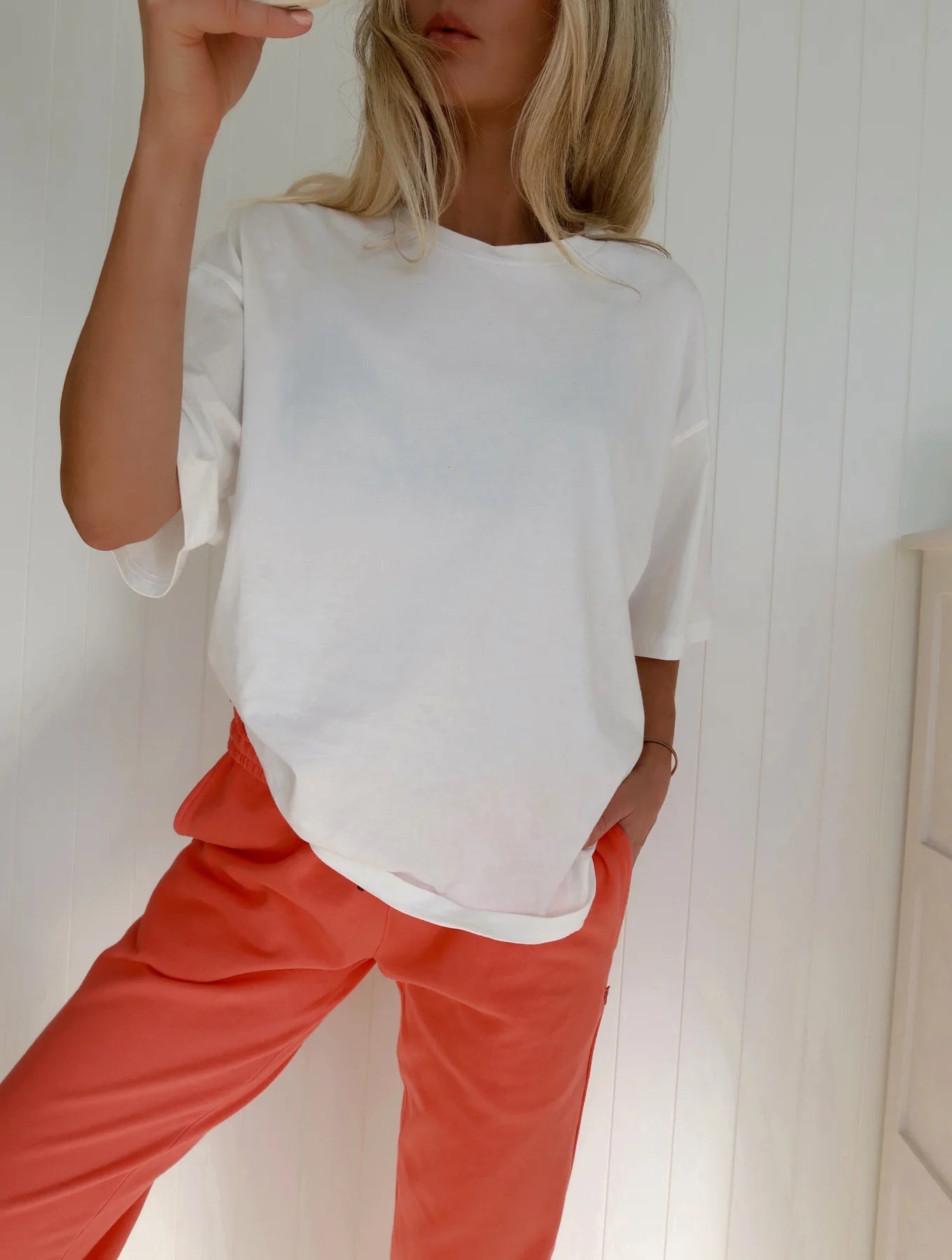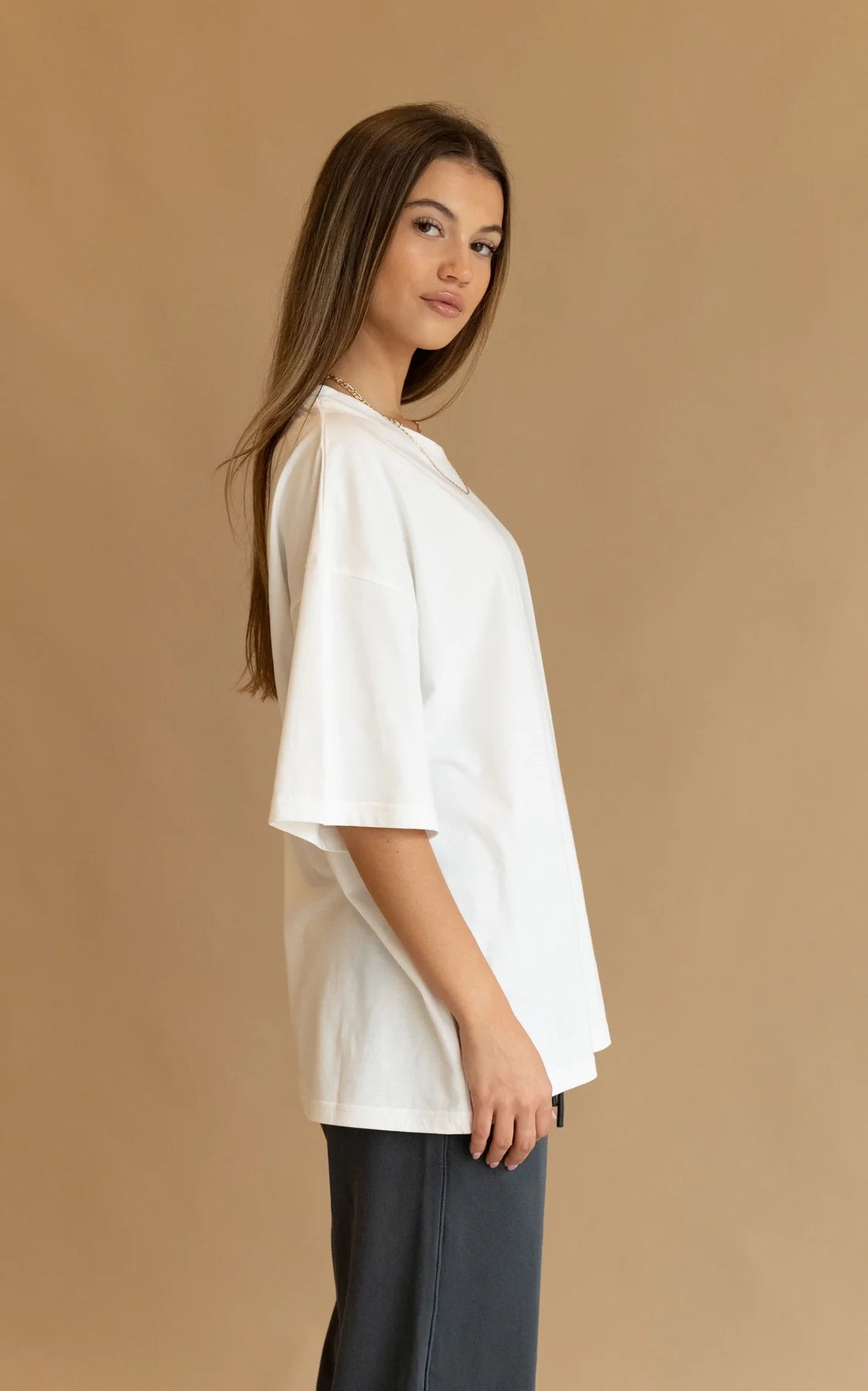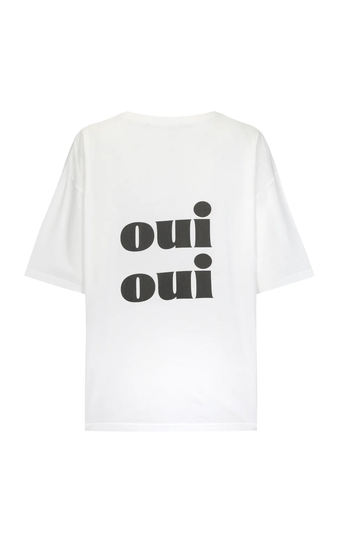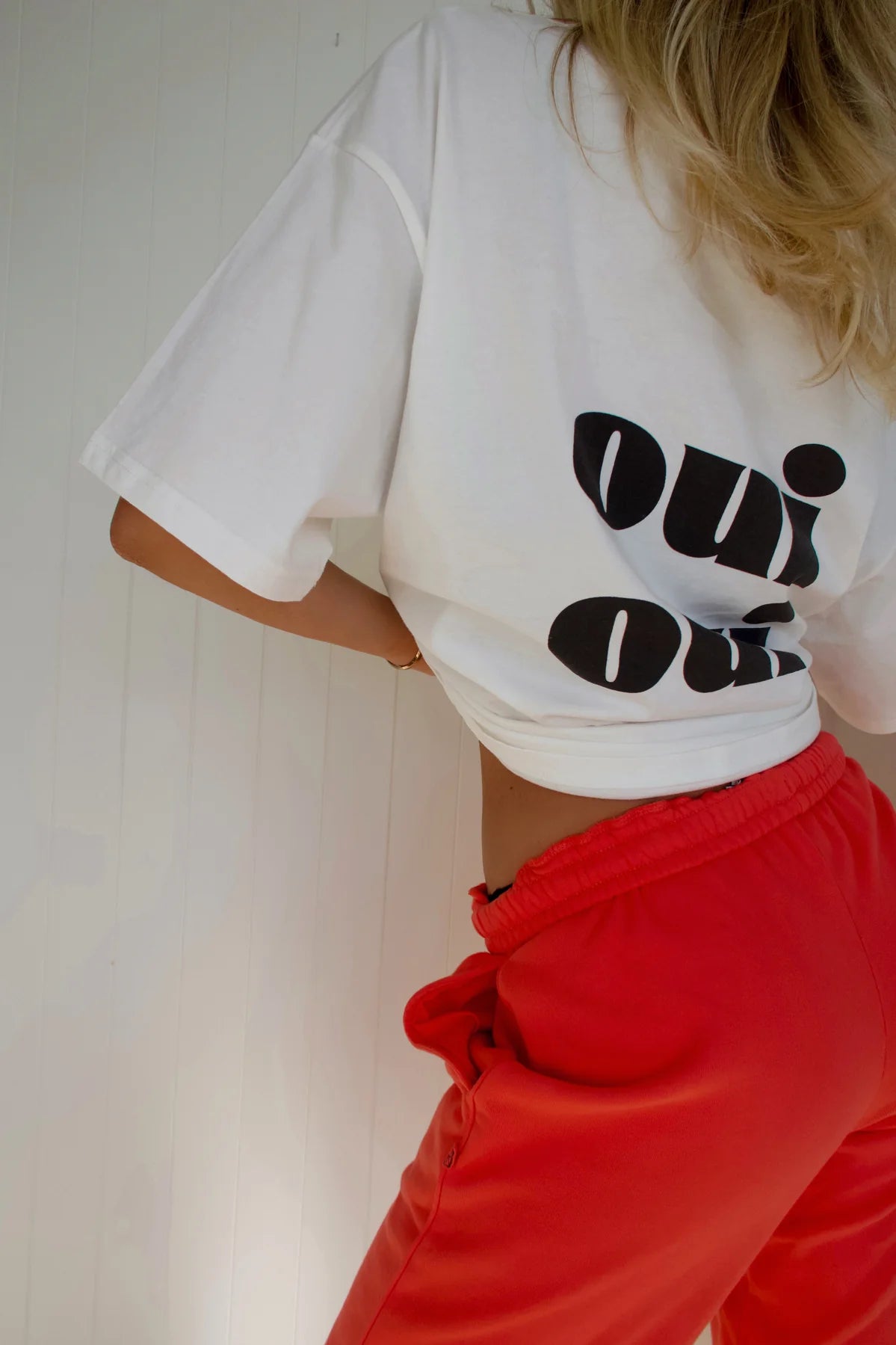 Our Oui Tee is a classic oversized, boxy fit cut in a soft Snow colour. Made from 100% cotton and featuring our oui oui graphic printed at the back, this is the perfect elevated essential tee you have been searching for. Add this basic to your capsule wardrobe and pair back with any of our trackpants for an effortless yet chic leisurewear look.