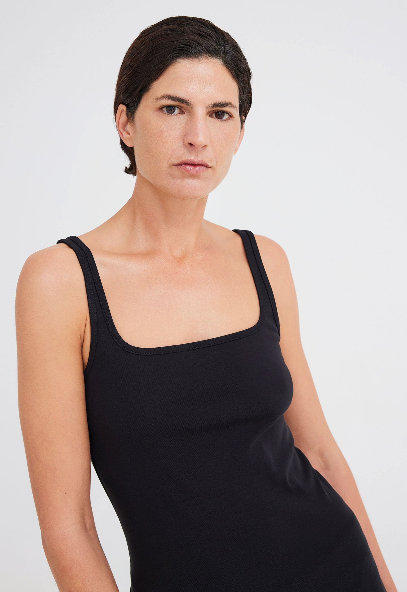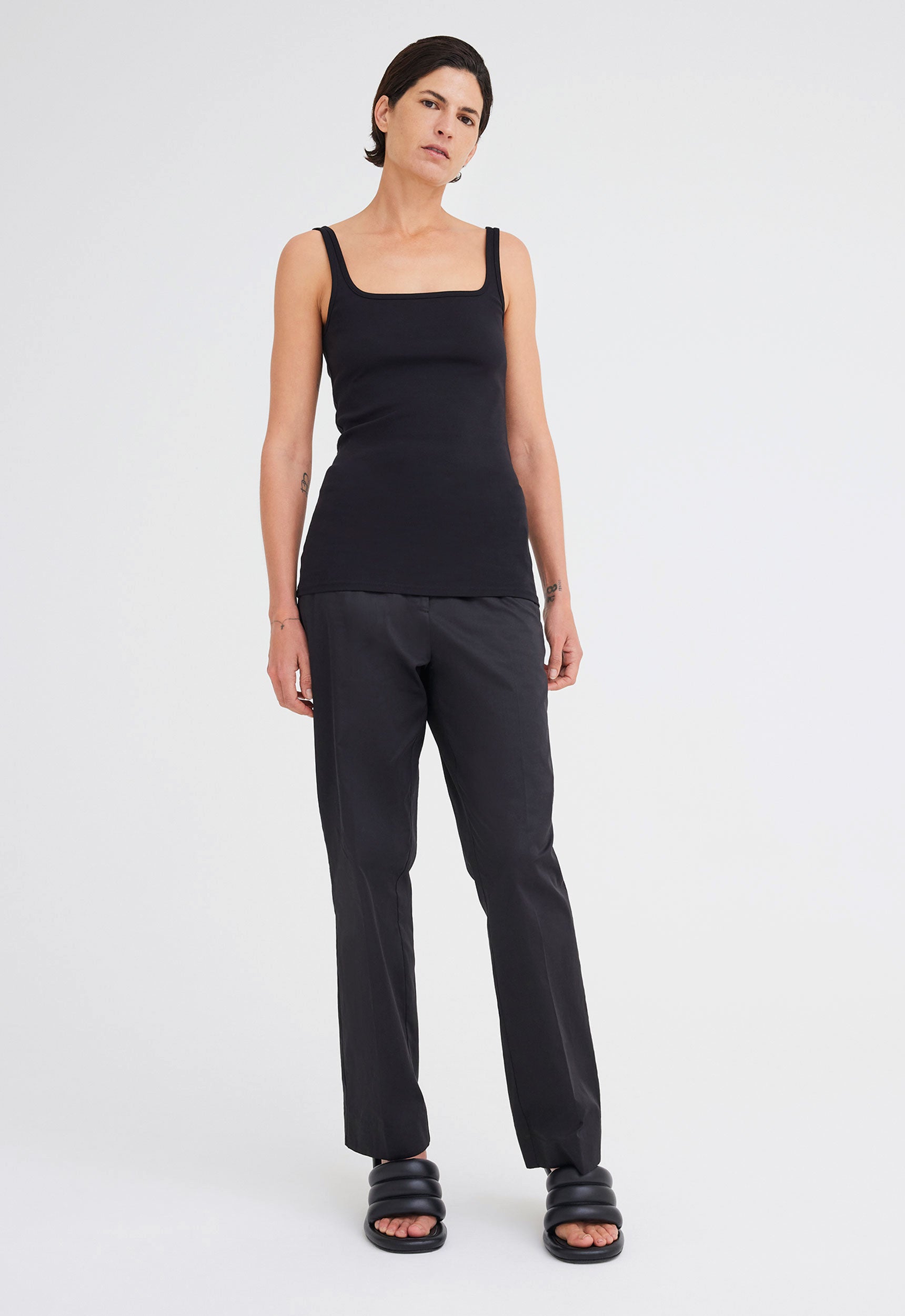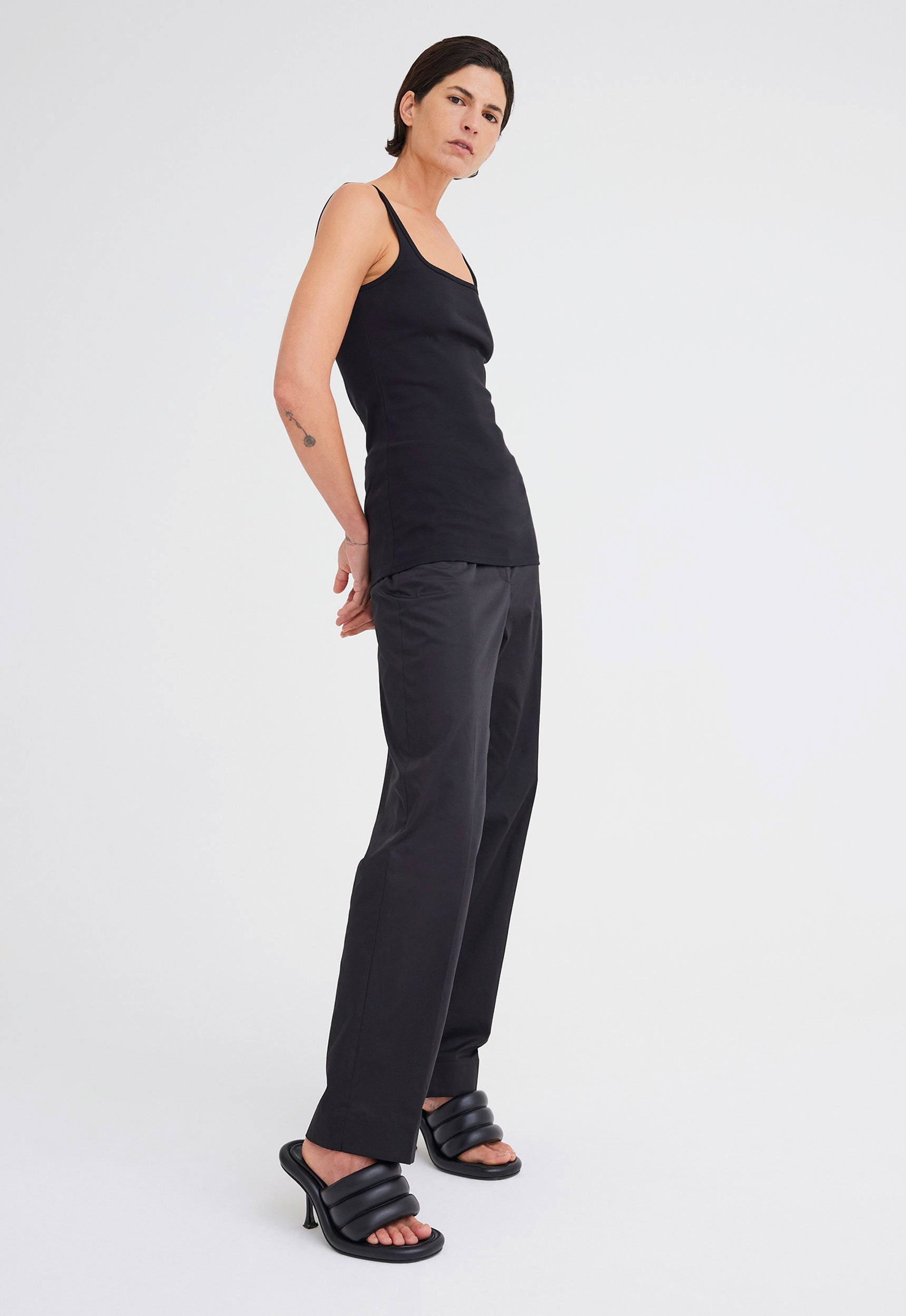 An elevated essential, this ribbed tank top is crafted from a fine mercerised organic cotton jersey. With a squared neckline, thing shoulder straps and a fitted silhouette, this is a style that will carry you season to season.
