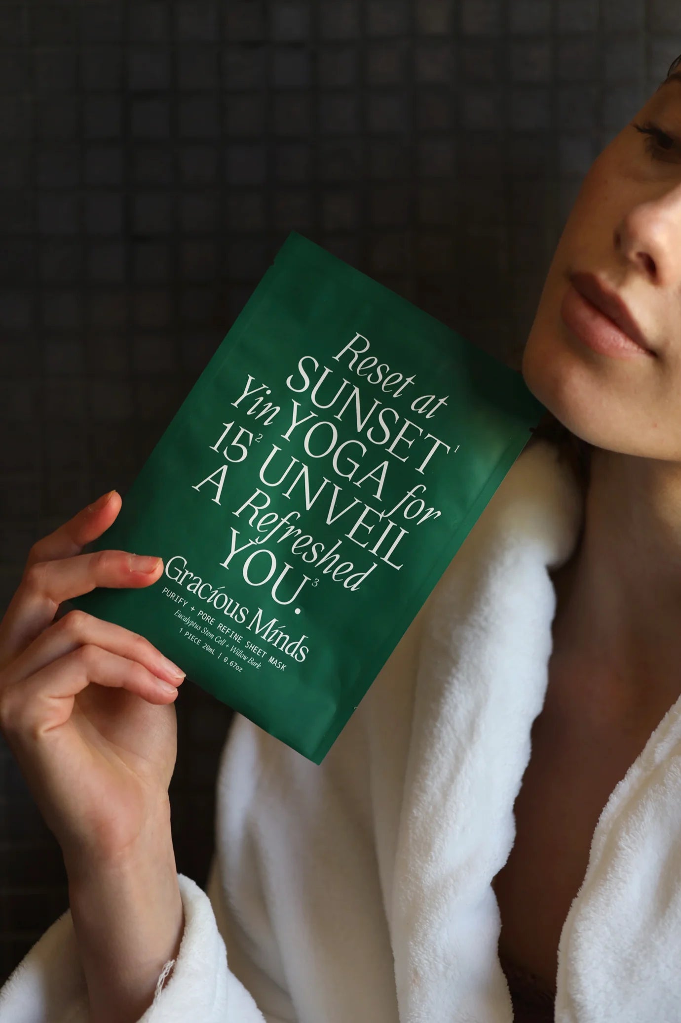 This serum-drenched mask by Gracious Minds soothes and purifies the skin to reveal a more calm and even complexion. The natural blend of Willow Bark, Australian Native Eucalyptus Stem cell and Native Finger Lime work to balance the skin and pore refine in just 15 minutes.