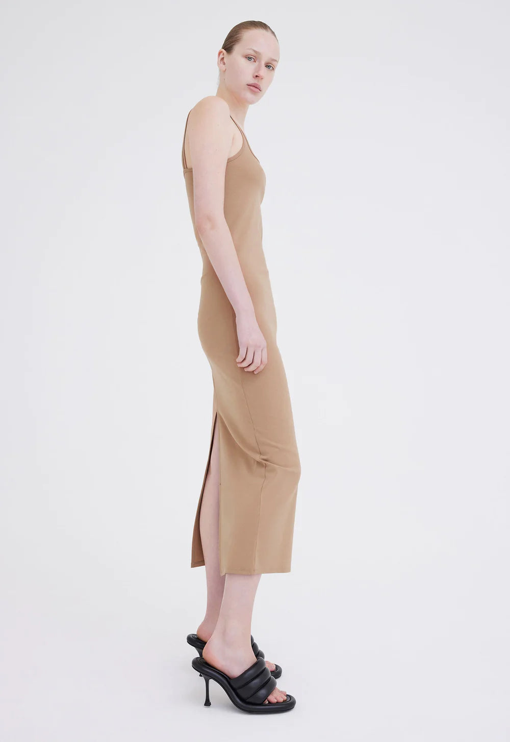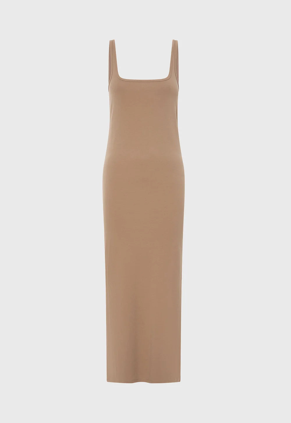 This ribbed tank dress is a wardrobe essential that will take you through the seasons. The ultimate in easy elegance, it's cut from a fine ribbed organic cotton stretch jersey for a close fit, with a squared neckline and maxi length. Whether dressed down with flats or elevated with heels, this dress will become a favourite for years to come.