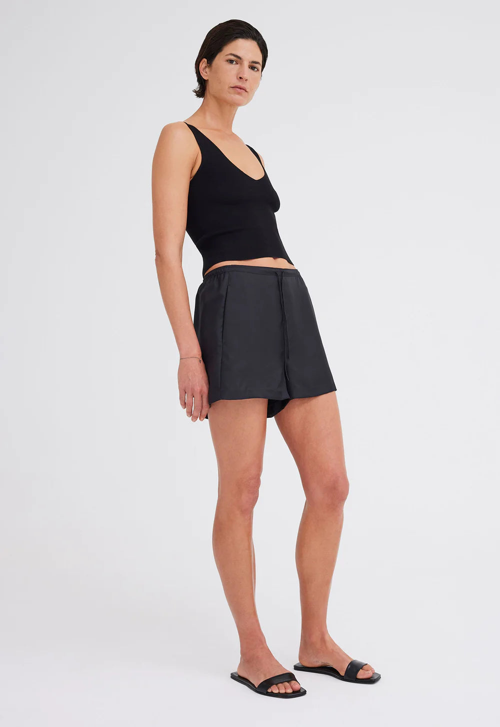 Tailored from pure silk twill for softness and lustre, these lightweight summer shorts strike the perfect balance between casual and elevated. Featuring a gathered waistline with drawstring ties and side seam pockets, this pull-on style is designed for comfort and ease. Whether worn back with matching silks or a favourite tee these will give any ensemble a high summer feel.