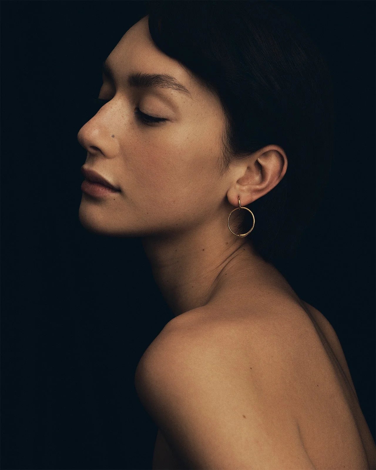 The Serpent Earring, in 18k Gold Vermeil, has a fine hand-polished hoop that links infinitely onto the exquisitely detailed, hand-carved Serpent hoop.