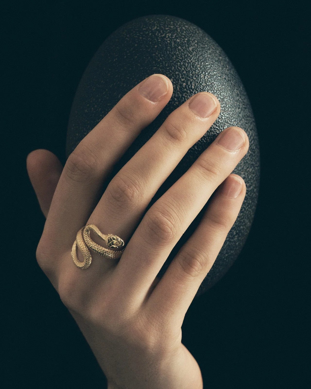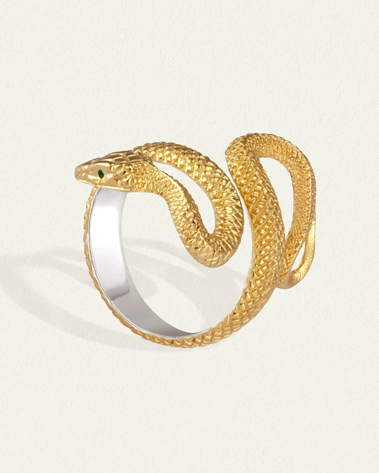 The Serpent Ring, in 18k Gold Vermeil, calls on the inner wisdom of its wearer; reminding them with each new day we’re given the opportunity to rebirth into the best versions of ourselves.