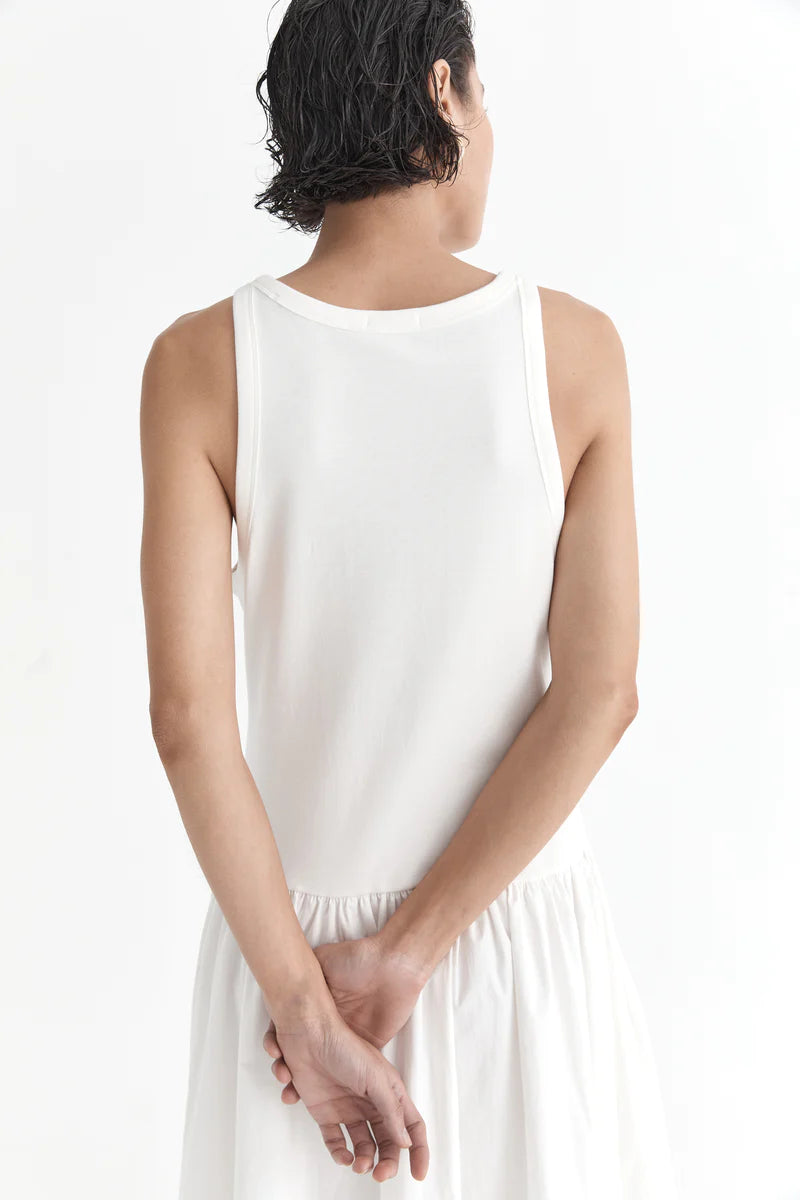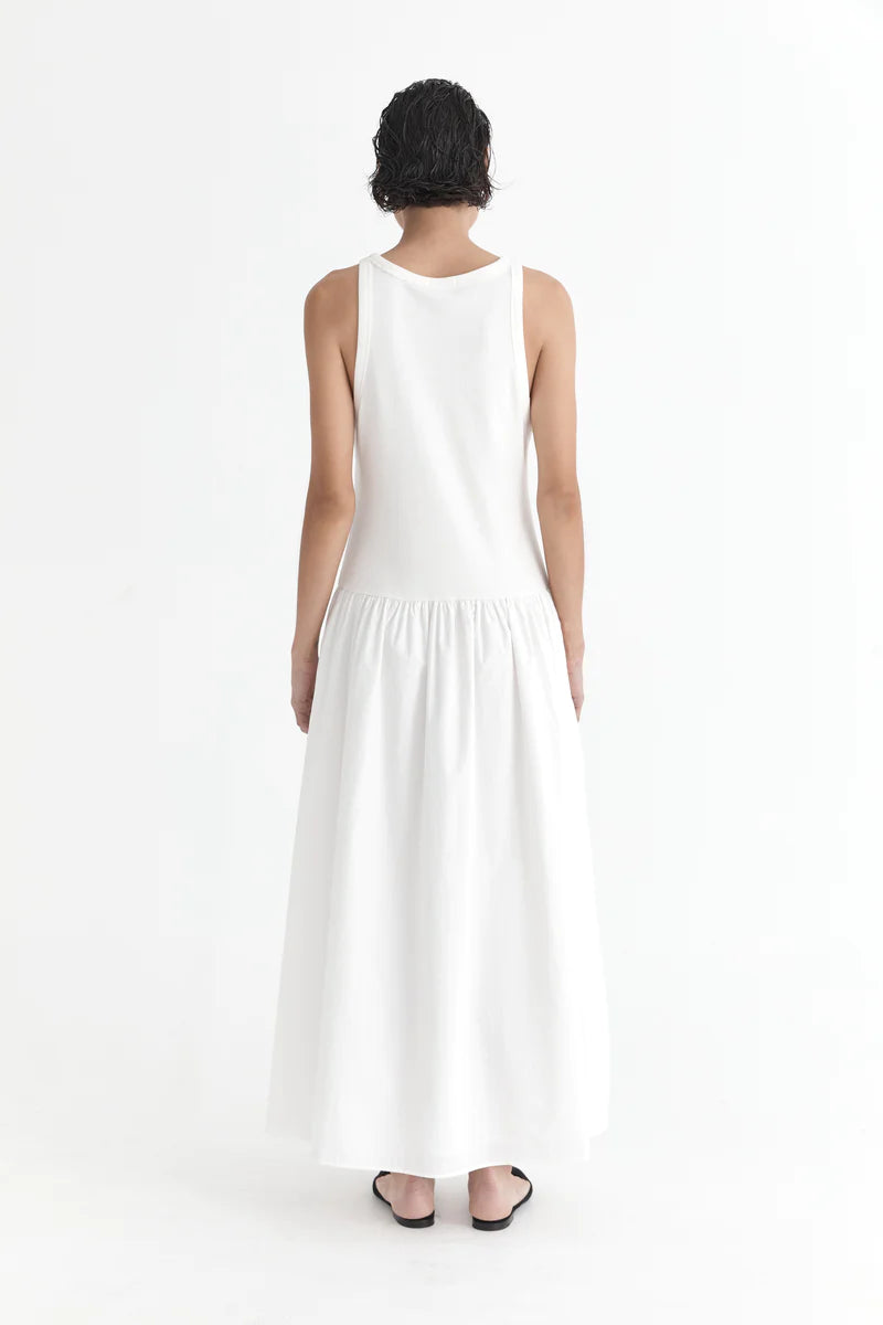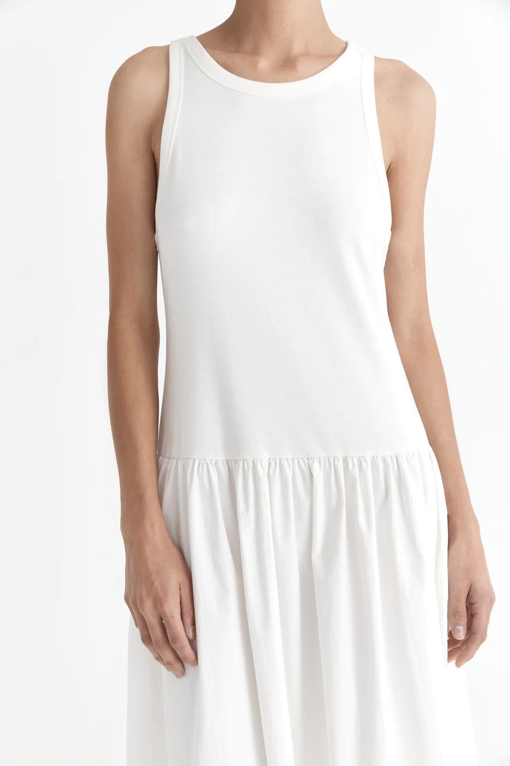 Expertly crafted from 100% Cotton, The Marlo Dress is a luxurious ensemble, combining a tank top bodice with a draped drop-waist cotton skirt; a timelessly elegant combination.